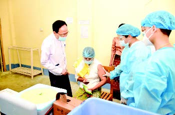 ကာကွယ်ဆေးထိုးနှံ နေပြည်တော် ပြည်သူ့ကျန်းမာရေးဦးစီးဌာနအနေဖြင့် စည်ပင်ဧည့်ရိပ်သာ (၁) ကာကွယ်ဆေးထိုးစုရပ်တွင် ပြည်ထောင်စုအဆင့်ဝန်ကြီးဌာနများမှ လက်ထောက် ညွှန်ကြားရေးမှူး အဆင့်အထိ အရာထမ်းများအား ကာကွယ်ဆေးထိုးနှံပေးခြင်းကို ဆောင်ရွက်ပေးလျက်ရှိရာ ကျန်းမာရေးနှင့်အားကစားဝန်ကြီးဌာန ပြည်ထောင်စုဝန်ကြီး ပါမောက္ခ ဒေါက်တာသက်ခိုင်ဝင်း၊ ဒုတိယဝန်ကြီး ဦးမျိုးလှိုင်၊ ညွှန်ကြားရေးမှူးချုပ်များနှင့် တာဝန်ရှိသူများက သွားရောက်ကြည့်ရှု အားပေးပြီး ကြီးကြပ်ဆောင်ရွက်ပေးသည်။