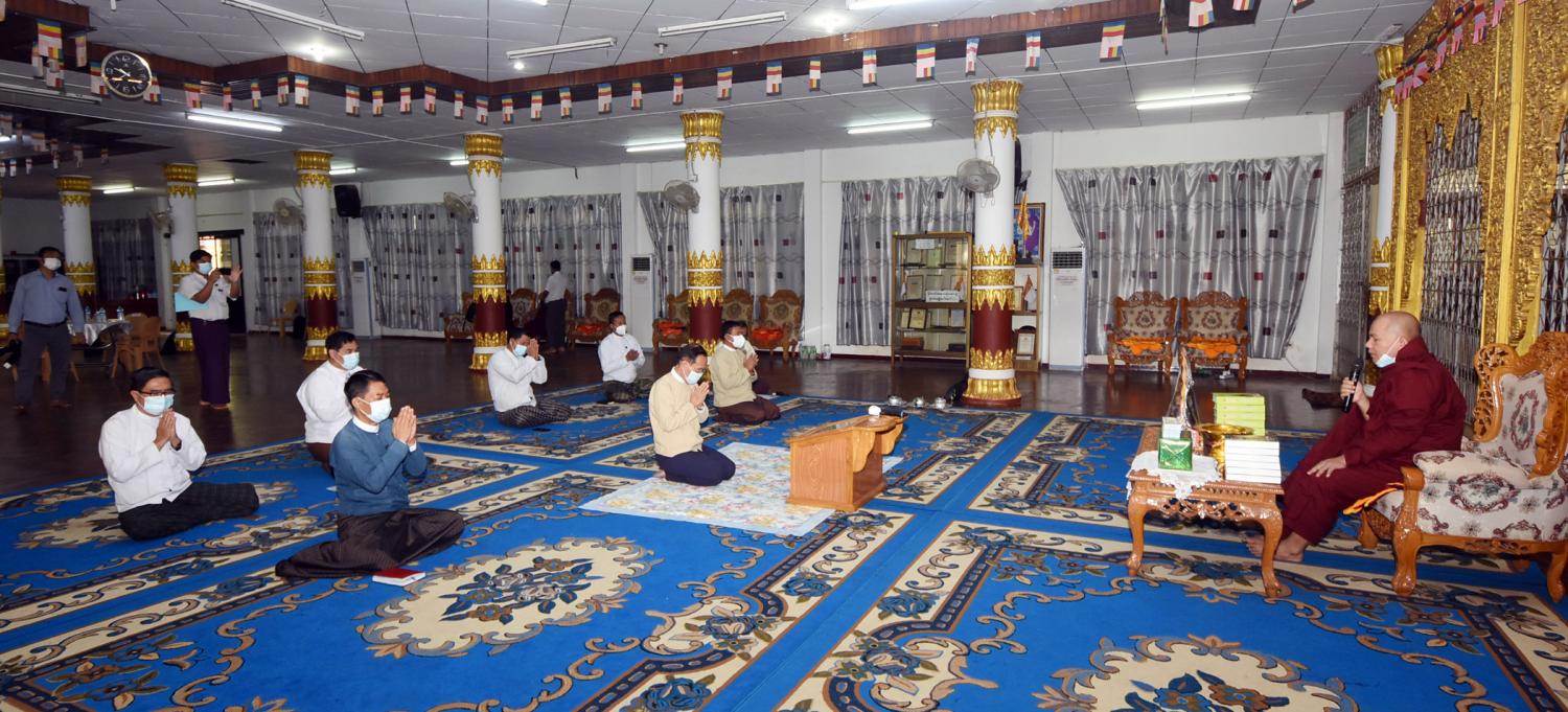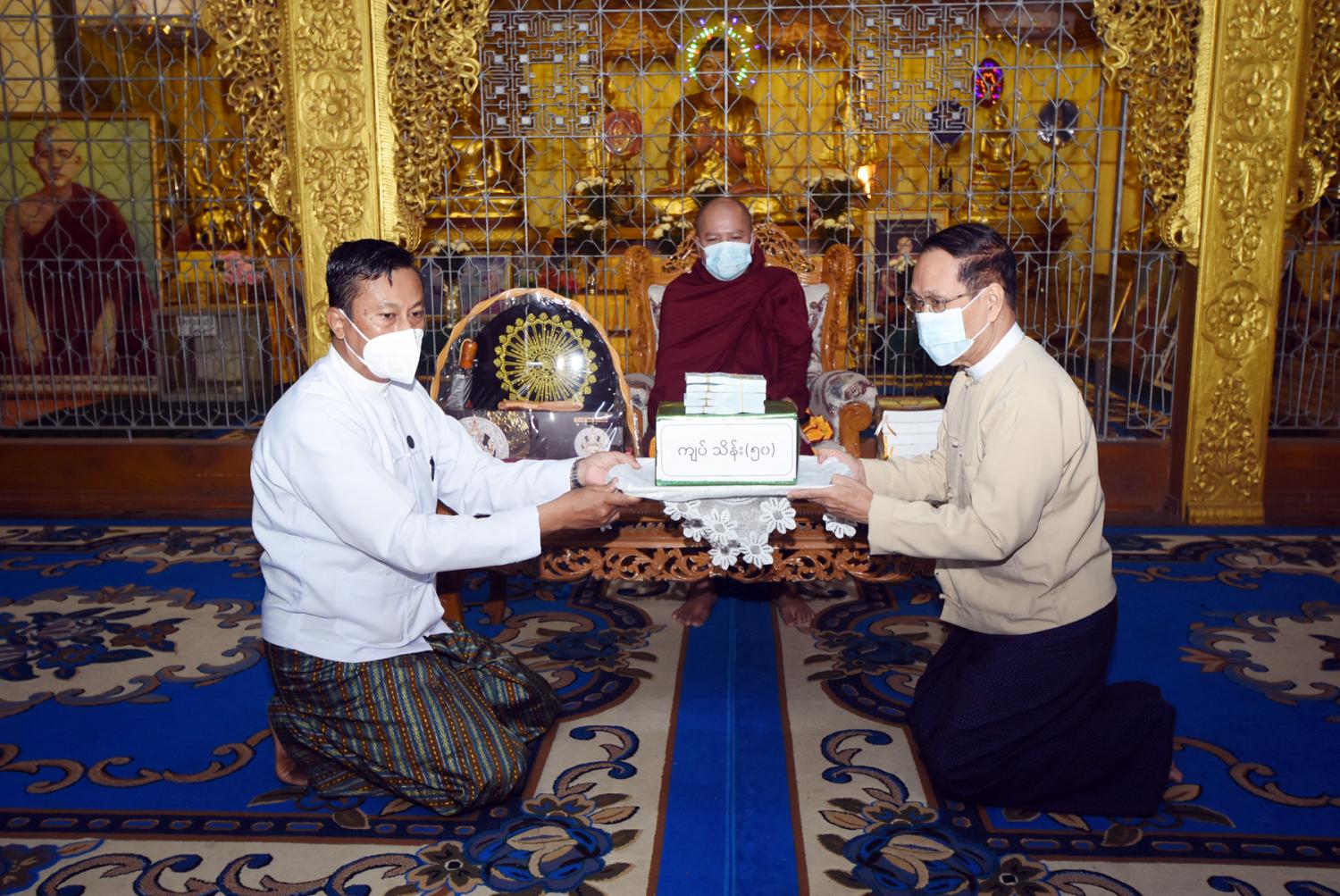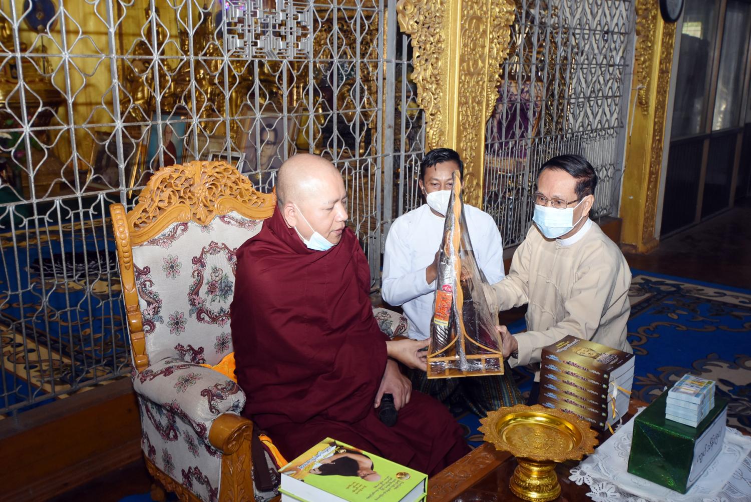 ထို့နောက် ပြည်ထောင်စုဝန်ကြီးက ထေရဝါဒဗုဒ္ဓသာသနာတော် တည်တံ့ပြန့်ပွား ရေး အတွက် ကြိုးပမ်းဆောင်ရွက်သွားမည်ဖြစ်ပါကြောင်း၊ ဆရာတော်ကြီးများက ဓမ္မာနုဂ္ဂဟ ဖြင့် ဆောင်ရွက်သကဲ့သို့ ဒါယကာများမှလည်း ပစ္စယာနုဂ္ဂဟဖြင့် ထောက်ပံ့လှူဒါန်းရေးဆောင် ရွက်သွားမည်ဖြစ်ပါကြောင်း၊ နိုင်ငံတော်စီမံအုပ်ချုပ်ရေး ကောင်စီ နိုင်ငံတော် တာဝန်ယူပြီး ရွှေတိဂုံစေတီတော်မြတ်ကြီးနှင့် တစ်နိုင်ငံလုံးရှိ ဘုရား၊ စေတီ၊ ပုထိုးများကို ဖေဖော်ဝါရီ ၈ ရက် တွင် တစ်နိုင်ငံလုံး၌ ပြည်သူများဖူးမျှော် ကြည်ညိုနိုင် ရန် ဆောင်ရွက်ခဲ့ကြောင်း၊ အကြိမ် (၆၀) မြောက် မဟာဘွဲ့နှင်းသဘင်အခမ်းအနားနှင့် အဋ္ဌမ အကြိမ် နိုင်ငံတော် သံဃမဟာနာယ က အဖွဲ့ (၄၇) ပါးစုံညီ ဆဋ္ဌမအစည်းအဝေးနှင့် သတ္တမ အစည်းအဝေးကို အောင်မြင်စွာ ကျင်းပပြီး စီးခဲ့ပါကြောင်း၊ သာသနာတော်ဆိုင်ရာ ဘွဲ့တံဆိပ်တော်များ လှူဒါန်းဆက်ကပ်ပွဲ အခမ်းအနား ကို တပေါင်းလပြည့်နေ့ မတ် (၂၇)ရက်တွင် ကျင်းပသွားမည်ဖြစ်ကြောင်း၊ ဘုန်းတော်ကြီး သင်ပညာရေးကျောင်းများကို အထူးအလေး ထား ထောက်ပံ့ ဆောင်ရွက်သွား မည်ဖြစ်ကြောင်း သာသနာရေးဆိုင်ရာများ လျှောက်ထား သည်။