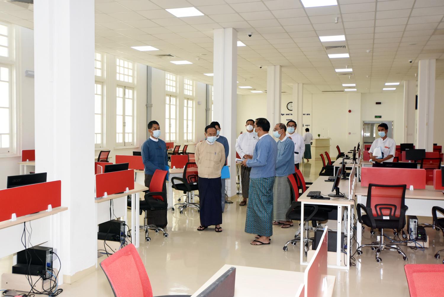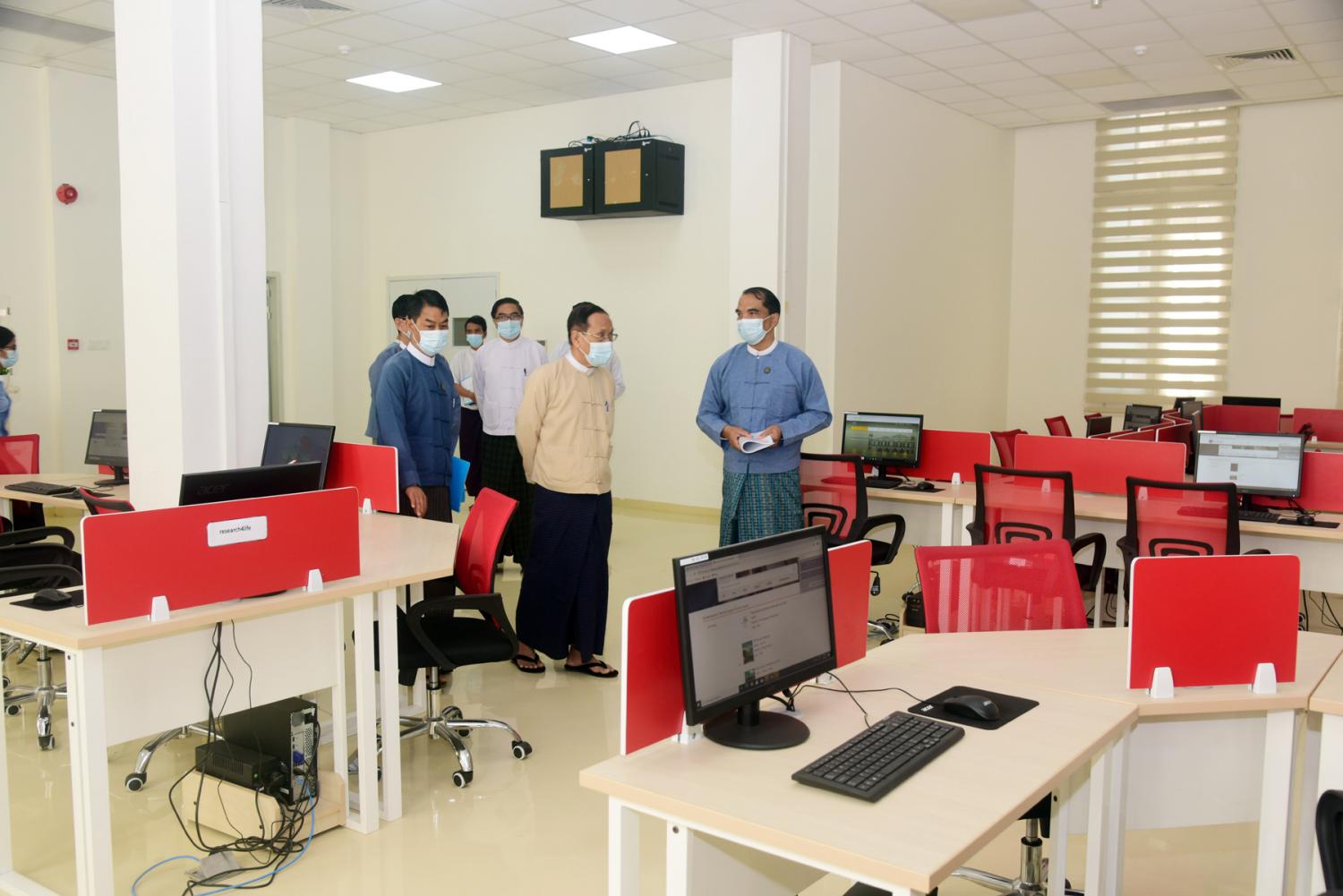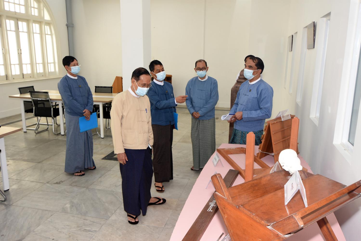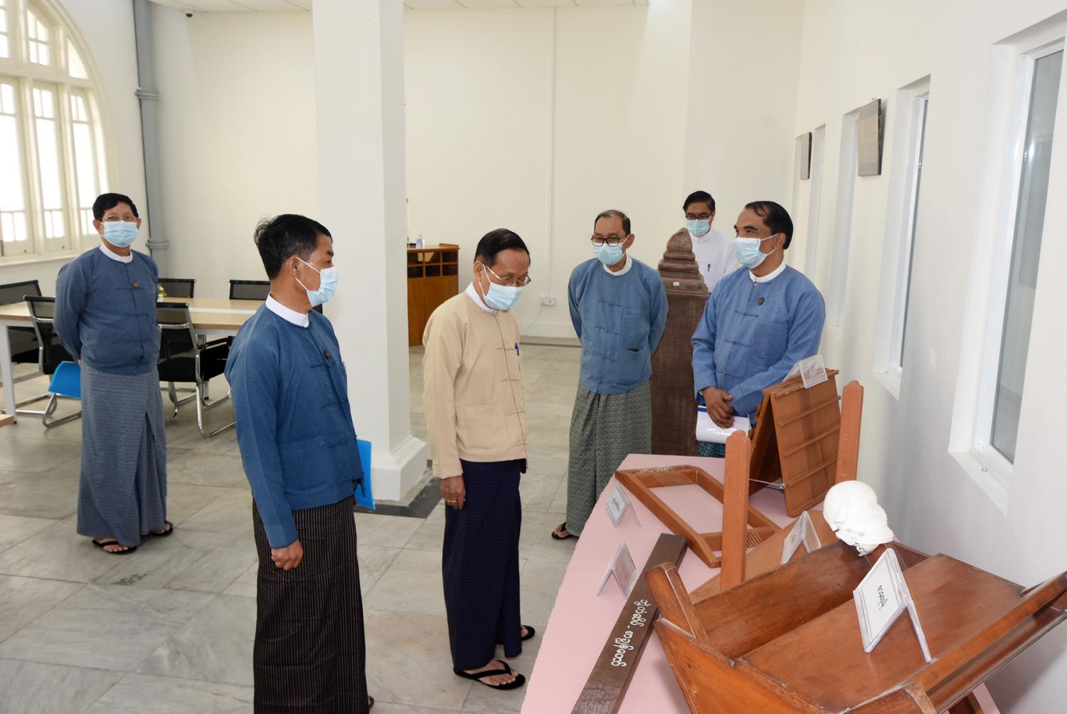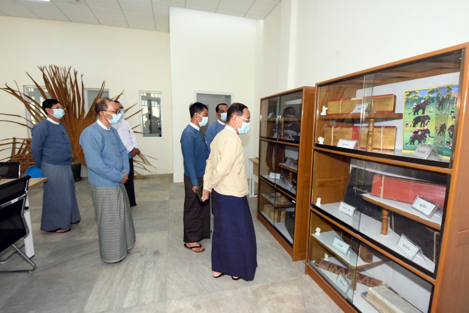 ထို့နောက် ပြည်ထောင်စုဝန်ကြီးသည် အမျိုးသားစာကြည့်တိုက်(ရန်ကုန်)ရှိ Multimedia Room၊ Digital Library Room၊ Children Story Telling Room၊ Children Library Room၊ Special Reading Room၊ Data Center ၊ Exhibition Hall ၊ စာအုပ်စင်ခန်းများနှင့် သင်တန်းခန်းမတို့၏ ခင်းကျင်းနေရာချထားမှုတို့ကို လှည့်လည်ကြည့် ရှုရာ သမိုင်းသုတေသနနှင့် အမျိုးသားစာကြည့်တိုက်ဦးစီးဌာနမှ ညွှန်ကြားရေးမှူးချုပ်က လိုက်လံရှင်းလင်းပြသပြီး ပြည်ထောင်စုဝန်ကြီးက ကိုဗစ်-၁၉ အလွန်ကာလ၌ စာကြည့်တိုက် ဝန်ဆောင်မှုလုပ်ငန်းများ အရှိန်အဟုန်ဖြင့်ဆောင်ရွက်ရေး၊ စာကြည့်တိုက်ဆိုင်ရာလှုပ်ရှားမှု များ တိုးမြှင့်ဆောင်ရွက်ရေး၊ နိုင်ငံတကာစာကြည့်တိုက်များဖြင့် ချိတ်ဆက်၍ စာကြည့်တိုက် လုပ်ငန်းများ ဖွံ့ဖြိုးသည်ထက် ဖွံ့ဖြိုးအောင်ဆောင်ရွက်ရေးတို့ကို ကြိုးပမ်းဆောင်ရွက်သွား ရန်မှာကြားသည်။