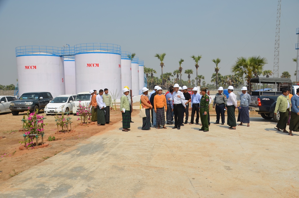 မန္တလေးတိုင်းဒေသကြီး မြင်းခြံခရိုင် တောင်သာမြို့နယ် ကျောဇီကျေးရွာအနီးရှိ MCCM Co., Ltd ၏ အသေးစားရေနံချက်လုပ်ငန်း (Mini Refinery) စမ်းသပ်လည်ပတ်နေမှုကို ယနေ့ နံနက်ပိုင်းတွင် မန္တလေးတိုင်းဒေသကြီး ခေတ္တဝန်ကြီးချုပ် ဦးဇာနည်အောင်နှင့် လျှပ်စစ်နှင့်စွမ်းအင်ဝန်ကြီးဌာန ဒုတိယဝန်ကြီး ဒေါက်တာထွန်းနိုင်တို့ သွားရောက်ကြည့်ရှု စစ်ဆေးသည်။