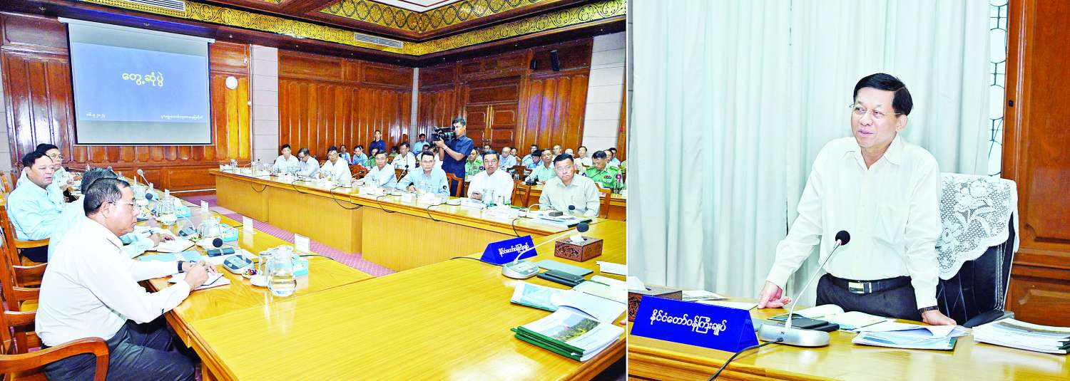 ယင်းနောက် တောင်တရုတ်ပင်လယ်ပြင်တွင် ဖြစ်ပေါ်ခဲ့သော တိုင်ဖွန်းမုန်တိုင်း ရာဂီ၏အရှိန်နှင့် ဘင်္ဂလားပင်လယ်အော် အနောက်အလယ်ပိုင်းနှင့် အနောက်မြောက်ပိုင်းတို့တွင် ဖြစ်ပေါ်နေသော မုန်တိုင်းငယ်၏အရှိန်ကြောင့် စက်တင်ဘာ ၁၀ ရက်မှစတင်၍ နေရာအနှံ့အပြား မိုးအဆက်မပြတ်ရွာသွန်းမှုများဖြစ်ပွားခဲ့ပြီး ချောင်းရေနှင့်မြစ်ရေများ အဆက်မပြတ်မြင့်တက်လာမှုနှင့်အတူ နေပြည်တော်ကောင်စီနယ်မြေအတွင်းရှိ မြို့နယ်အချို့တို့တွင် ရေကြီးရေလျှံမှုများဖြစ်ပေါ်ခဲ့မှု၏ ရေစီးဆင်းရာအစဖြစ်သည့် ရှမ်းကုန်းပြင်မြင့်နှင့် ဆက်စပ်တောင်ကုန်း တောင်တန်းများပေါ်မှ ရေများစီးဆင်းတိုက်စားခဲ့မှုကြောင့် တောင်ပြို၊ မြေပြိုမှုများဖြစ်ပေါ်နေမှု၊ အဆိုပါ တောင်ကုန်းတောင်တန်းများပေါ်မှ ဖြတ်သန်းစီးဆင်းလာသည့် တောင်ကျချောင်းရေများသည် မုန်ချောင်း၊ နဝင်းချောင်း၊ ကင်းသာချောင်းတို့နှင့် ၎င်းချောင်းများအားလုံးစုစည်း၍ စီးဝင်ရာဆင်သေချောင်း တစ်လျှောက်တို့၌ တောင်ကျချောင်းရေအရှိန်အဟုန်ဖြင့် စီးဆင်းခဲ့မှုကြောင့် ရေတိုက်စားရာလမ်းကြောင်း ကြီးများဖြစ်ပေါ်နေမှုနှင့် ရေပြန်လည်ကျဆင်းသွားပြီးနောက် သဲနုန်းများ၊ အပျက်အစီးများဖြစ်ပေါ်ကျန်ရှိနေမှု၊ စိုက်ဧကအများအပြားပျက်စီးခဲ့မှုနှင့် ရေစီးဆင်းရာလမ်းကြောင်းနှင့်နီးစပ်သည့် အချို့သောကျေးရွာများ ရေဖုံးလွှမ်းခဲ့မှုဖြစ်ပေါ်ခဲ့ပြီး ထိခိုက်ပျက်စီးခဲ့ရမှုအခြေအနေများကို ရဟတ်ယာဉ်ပေါ်မှ အသေးစိတ်ကြည့်ရှုစစ်ဆေးခဲ့ပြီး ပြန်လည်ထူထောင်ရေးလုပ်ငန်းများနှင့် သဘာဝဘေးအန္တရာယ် ကြိုတင်ကာကွယ်ရေးလုပ်ငန်းများ ဆက်လက်ဆောင်ရွက်ရမည့် အခြေအနေများနှင့်ပတ်သက်၍ တာဝန်ရှိသူများကိုမှာကြားခဲ့ကြောင်း သတင်းရရှိသည်။
