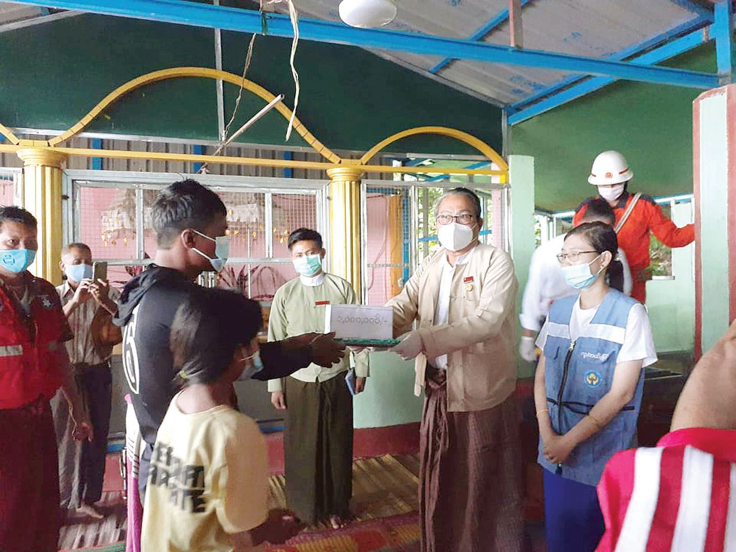 သို့ပါ၍ လူမှုဝန်ထမ်း၊ ကယ်ဆယ်ရေးနှင့် ပြန်လည်နေရာချထားရေးဝန်ကြီးဌာနအနေဖြင့် ဘေးသင့်ပြည်သူများအတွက် ဆန်ရိက္ခာဖိုး၊ အိမ်ဆောက်ပစ္စည်းဖိုးများနှင့် ကယ် ဆယ်ရေးပစ္စည်းများကို သက်ဆိုင်ရာ ဘေးအန္တရာယ်ဆိုင်ရာ စီမံခန့်ခွဲမှုဦးစီးဌာနမှ တာဝန်ရှိသူများက တိုင်းဒေသကြီး/ ပြည်နယ်အစိုးရအဖွဲ့များ၊ ဒေသဆိုင်ရာ အထွေထွေအုပ်ချုပ်ရေးဦးစီးဌာနမှ တာဝန်ရှိသူများနှင့် ပူးပေါင်းကာ ဘေးသင့်နေရာများသို့ အမြန်ဆုံးသွားရောက် ထောက်ပံ့ပေးလျက်ရှိသည်။