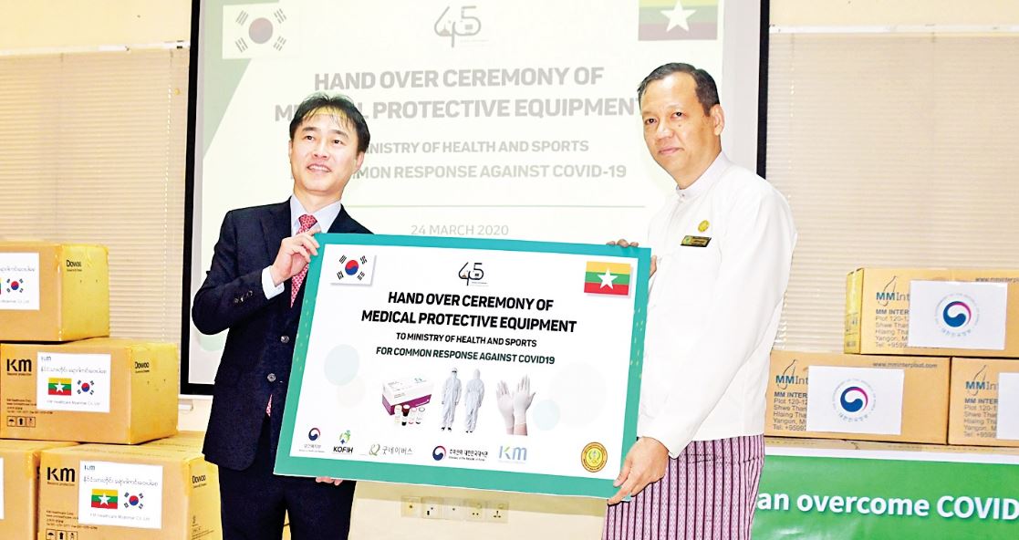 ၂၀၂၀ ပြည့်နှစ် မတ်လက မြန်မာနိုင်ငံတွင် ကိုဗစ်-၁၉ ရောဂါ ဓာတ်ခွဲအတည်ပြုလူနာ ထွက်ပေါ်လာပြီး နောက် ကိုရီးယားသမ္မတနိုင်ငံသည် အစိုးရ၊ ဌာနဆိုင်ရာ၊ ကုမ္ပဏီ၊ NGO အဖွဲ့အစည်း၊ ကိုရီးယား အသိုက်အဝန်းတို့မှ Team Korea ကိုဖွဲ့ကာ Test kit များ၊ တစ်ကိုယ် ရေသုံး ကာကွယ်ရေးပစ္စည်းများကို ကိုဗစ်-၁၉ ရောဂါ ကာကွယ်၊ ထိန်းချုပ်၊ ကုသရေး လုပ်ငန်းများတွင် အသုံးပြုရန် ကျန်းမာရေးနှင့် အားကစားဝန်ကြီးဌာနသို့ ဆက်တိုက် ထောက်ပံ့လှူဒါန်းခဲ့ကြောင်း မြန်မာနိုင်ငံဆိုင်ရာ ကိုရီးယားသံရုံးမှ သိရသည်။