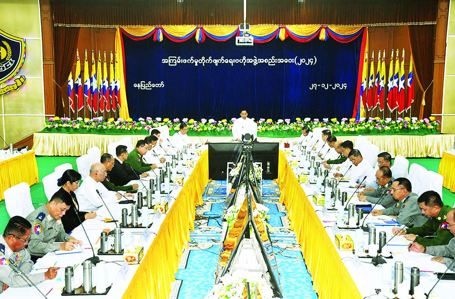 ထို့နောက် နိုင်ငံတော်စီမံအုပ်ချုပ်ရေးကောင်စီဝင် အကြမ်းဖက်မှုတိုက်ဖျက်ရေးဗဟိုအဖွဲ့ဥက္ကဋ္ဌ ပြည်ထောင်စုဝန်ကြီးက အစည်းအဝေးတွင် မှတ်တမ်းတင်ခဲ့သည့်အချက်များ၊ အတည်ပြုပေးခဲ့သည့်အချက်များ၊ ခွင့်ပြုပေးခဲ့သည့်အချက်များကို သက်ဆိုင်ရာလုပ်ငန်းကော်မတီများ၊ လုပ်ငန်းအဖွဲ့များက လုပ်ထုံးလုပ်နည်းနှင့်အညီ အကောင်အထည်ဖော်ဆောင်ရွက်ရေး၊ အကြမ်းဖက်မှု၊ မူးယစ်ဆေးဝါး၊ ငွေကြေးခဝါချမှု၊ လက်နက်မှောင်ခိုမှုတို့ အကြား ဆက်စပ်နေမှုကို အမြဲမပြတ်လေ့လာသုံးသပ်ပြီး အကြမ်းဖက်မှုများကို ခေတ်နှင့်အညီ တိုက်ဖျက်နိုင်ရေး၊ နိုင်ငံတကာပူးပေါင်းဆောင်ရွက်မှုအခန်းကဏ္ဍမြှင့်တင်ရေး၊ အကြမ်းဖက်မှုများ၏ ဖြစ်စဉ်အမှန်ကို နိုင်ငံတကာက သိရှိစေရန်ဆောင်ရွက်ရေး၊ အကြမ်းဖက်မှုတိုက်ဖျက်ရေး၊ အစွန်းရောက်ဝါဒနှင့် အကြမ်းဖက်မှုတားဆီးကာကွယ်ရေးနှင့် တိုက်ဖျက်ရေးရန်ပုံငွေကို လုပ်ထုံးလုပ်နည်းနှင့်အညီ စနစ်တကျအသုံးပြုရေး၊ အကြမ်းဖက်မှုကျူးလွန်နိုင်ရန် ငွေကြေးထောက်ပံ့မှု၊ အကြမ်းဖက်အုပ်စုများနှင့် ဆက်နွှယ်နေသော ငွေကြေးစီးဆင်းမှုများကို စုံစမ်းထောက်လှမ်းဖော်ထုတ်ရေး၊ တားမြစ်ထိန်းချုပ်နိုင်ရေးတို့နှင့်စပ်လျဉ်း၍ ဆွေးနွေးပြောကြားခဲ့ကြောင်း သိရသည်။
