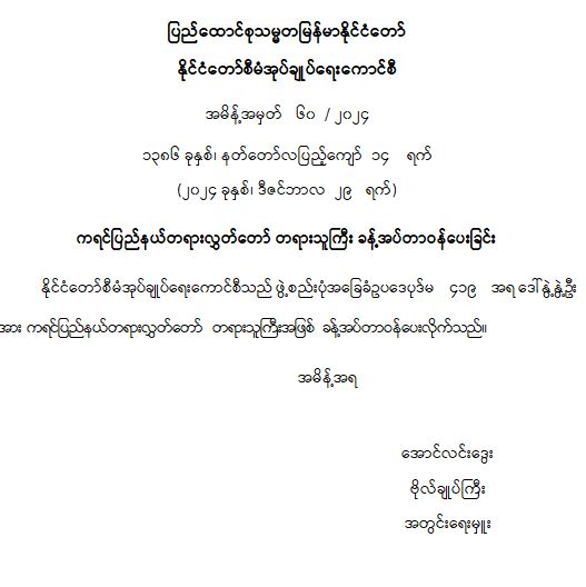 ဝန်ကြီးဌာန ကြေညာချက်များ