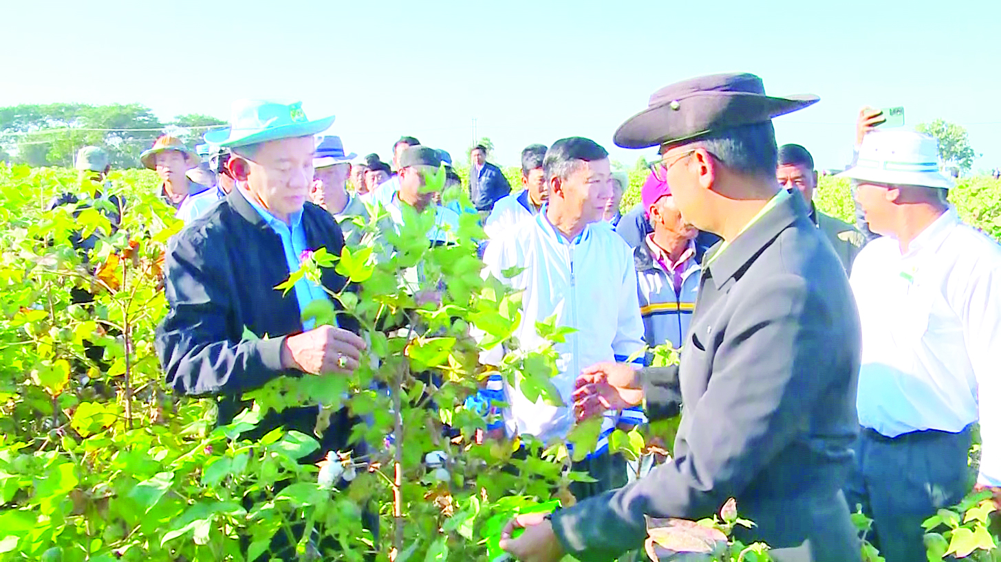 ထို့နောက် ကြူတောကန်အုပ်စုနတ်ပုတီးကျေးရွာရှိ တောင်သူ ဦးကျော်နိုင်၏ ဘဲကောင်ရေ ၅၀၀၀ မွေးမြူရေးခြံကို သွားရောက်ကြည့်ရှုအားပေးပြီး ဝဲကြီးဆည် ရေသောက်စနစ် သုံးသီးစိုက်ဧရိယာအတွင်း၌ စိုက်ပျိုးအောင်မြင်ဖြစ်ထွန်းနေသော ဆောင်းမတ်ပဲ ဧက ၁၅၀ စံပြကွက်ရွက်ဖျန်းမြေသြဇာပက်ဖျန်းနေမှုကို ကြည့်ရှုအားပေးကာ တောင်သူ အသိပညာပေးလုပ်ငန်းများ ကျယ်ပြန့်ထိရောက်စွာ လုပ်ဆောင်ကြရန်၊ မျိုးကောင်းမျိုးသန့်များ ရွေးချယ်စိုက်ပျိုးကြရန်၊ စိုက်ပျိုးရေပေးဝေရန်၊ လိုအပ်သည့်နေရာများတွင် အခိုင်အမာဆောင်ရွက်ရန် အခက်အခဲများရှိပါက ယာယီအစီအစဉ်ဖြင့် ရေပေးဝေနိုင်ရေး စီမံဆောင်ရွက်ပြီး ရေပေးရာသီပြီးဆုံးချိန်တွင် သတ်မှတ်စံချိန်စံညွှန်းအတိုင်း အခိုင်အမာဆောင်ရွက်သွားကြရန် ဆွေးနွေးမှာကြားပြီး တောင်သူများ၏ အခက်အခဲများကို သက်ဆိုင်ရာဦးစီးဌာနများနှင့် ပေါင်းစပ်ညှိနှိုင်းပေး၍ ဆောင်းမတ်ပဲစံပြကွက်စိုက်ပျိုးသည့် တောင်သူများအား သွင်းအားစုများ ထောက်ပံ့ပေးအပ်သည်။