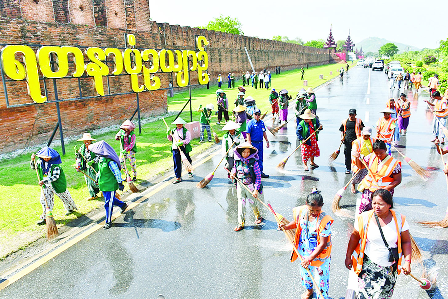 အလားတူ ကာကွယ်ရေးဦးစီးချုပ်ရုံး(ကြည်း)မှ ဒုတိယဗိုလ်ချုပ်ကြီး မျိုးမိုးအောင်နှင့် တာဝန်ရှိသူများသည် မန္တလေးမြို့၊ နန်းမြို့ရိုးသို့သွားရောက်၍ ရတနာပုံဥယျာဉ်လမ်းမတစ်လျောက် အများပြည်သူများ စိတ်အေးချမ်းသာစွာ အပန်းဖြေနိုင်ရေးအတွက် သန့်ရှင်းရေးဆောင်ရွက်နေမှုများ၊ မြို့ရိုးအရှေ့ဘက်ရှိ ငလျင်ဒဏ်ကြောင့် ပြိုကျပျက်စီးသွားသော လွန်ကဲပြသာဒ်နေရာတွင် အပျက်အစီးများ ဖယ်ရှားရှင်းလင်းနေမှုများ၊ ပြည်ကြီးတံခွန်မြို့နယ်ရှိ မြို့နယ်ရဲတပ်ဖွဲ့မှူးရုံးနှင့် မြို့မရဲစခန်းနေရာ၊ ချမ်းအေးသာစံမြို့နယ်ရှိ ဗဟိုမီးသတ်ရုံးတို့၌ ငလျင်ဒဏ်ကြောင့် ထိခိုက်ပျက်စီးမှုများအား လိုက်လံကြည့်ရှုစစ်ဆေးပြီး မိသားစုများအား တွေ့ဆုံအားပေး စကားပြောကြားကာ စားသောက်ဖွယ်ရာများ၊ အသုံးအဆောင်ပစ္စည်းများနှင့် အဝတ်အထည်များ ပေးအပ်သည်။