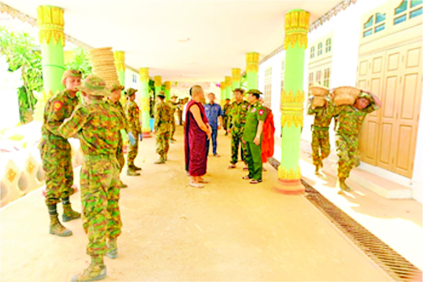 ကာကွယ်ရေးဦးစီးချုပ်ရုံး(ကြည်း)မှ ဒုတိယဗိုလ်ချုပ်ကြီး မျိုးသန့်နိုင်သည် တာဝန်ရှိသူများလိုက်ပါလျက် ကျောက်ဆည်မြို့၊ သင်တောင်းကြီးကျေးရွာရှိ မဟာရွှေသိမ်တော်မြတ်စွာဘုရား၌ ရွှေသင်္ကန်းကပ်လှူခြင်း၊ ကျောက်ဆည်မြို့၊ ကြက်မင်းတွန်ရပ်ကွက်ရှိ ရွှေစေတီဘုန်းတော်ကြီးကျောင်း၌ သန့်ရှင်းရေးပြုလုပ်နေမှုများကိုလည်းကောင်း၊ ယာယီဈေးအဖြစ် ပြောင်းရွှေ့ဖွင့်လှစ်မည့် စည်ပင်သာယာရေးပိုင်နယ်နိမိတ်ဖြစ်သော ဖောင်းရွာရပ်ကွက်၊ ဖောင်းရွာကွင်း၌ မြေနေရာရှင်းလင်းဖော်ထုတ်နေမှုများကို လည်းကောင်း၊ ငလျင်ဒဏ်ကြောင့် ထိခိုက်ခဲ့သည့် မင်းကုန်းမဟာစာသင်တိုက်မှ ကျောင်းဆောင်များအား SOP ဖြင့် စစ်ဆေးခဲ့ပြီး အန္တရာယ်ရှိ (၄)ထပ် ဆောင်အဆောက်အအုံ ဖြိုဖျက်ရှင်းလင်းဆောင်ရွက်ပေးနေမှု အခြေအနေများကိုလည်းကောင်း သွားရောက်ကြည့်ရှုစစ်ဆေးပြီး တာဝန်ရှိသူများ၏ တင်ပြချက်များအပေါ် လိုအပ်သည်များ ညှိနှိုင်းဖြည့်ဆည်းဆောင်ရွက်ပေးသည်။