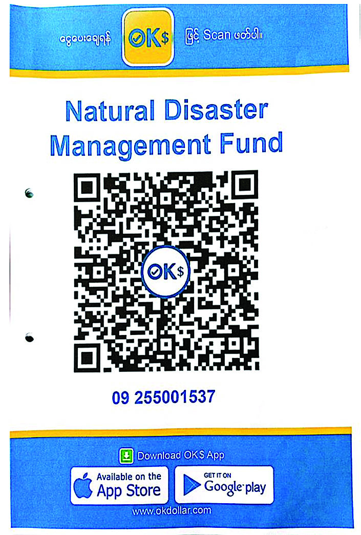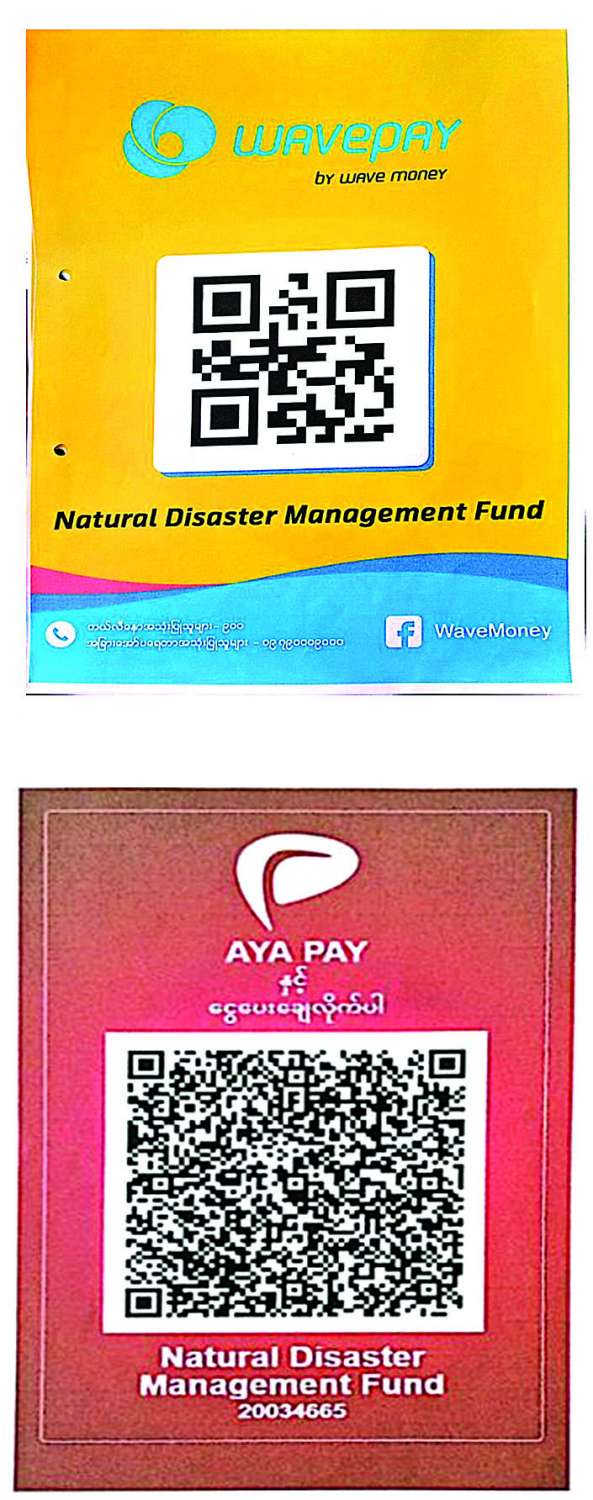 ၂။ အလှူငွေများကို မိုဘိုင်းငွေပေးချေမှုစနစ်ဖြင့် လှူဒါန်းလိုပါက KBZ Pay, CB pay, AYA Pay, OK$, Wave Money တို့၏ QR များကို Scan ဖတ်၍လည်းကောင်း၊ KBZ Pay QR code နံပါတ် 70157401001 သို့လည်းကောင်း၊ Wave Money ဖြင့် လှူဒါန်းလိုပါက ဖုန်းနံပါတ်(၀၉-၂၅၅၀၀၁၅၄၂ နှင့် ၀၉-၂၅၅၀၀၁၅၄၃) တို့သို့ တိုက်ရိုက်ပေးသွင်း၍လည်းကောင်း လှူဒါန်းခြင်းများ ဆောင်ရွက်နိုင်ပါသည်။ ထို့ပြင် ဗဟိုဘဏ်မှခွင့်ပြုထားသော မိမိနှစ်သက်ရာမည်သည့် Digital Wallet သို့မဟုတ် ဘဏ် Mobile Application မှမဆို KBZ Pay MMQR နှင့် CB Pay MMQR၊ OK$ MMQR များကို Scan ဖတ်၍ လှူဒါန်းနိုင်ပါသည်။
