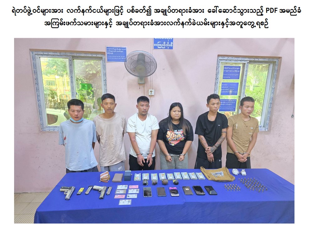 အဆိုပါ အချုပ်တရားခံ ဇွန်ပွင့်လှိုင်အပါအဝင် လက်နက်ခဲယမ်းများနှင့်အတူ ဖမ်းဆီးရမိသည့် PDF အမည်ခံ အကြမ်းဖက်သမား ၆ ဦးကို တရားဥပဒေနှင့်အညီ အရေးယူဆောင်ရွက်နိုင်ရေးအတွက် လုပ်ထုံးလုပ်နည်းများနှင့်အညီ ဆက်လက်ဆောင်ရွက်သွားမည်ဖြစ်ကြောင်း မြန်မာနိုင်ငံရဲတပ်ဖွဲ့မှ သတင်းရရှိသည်။