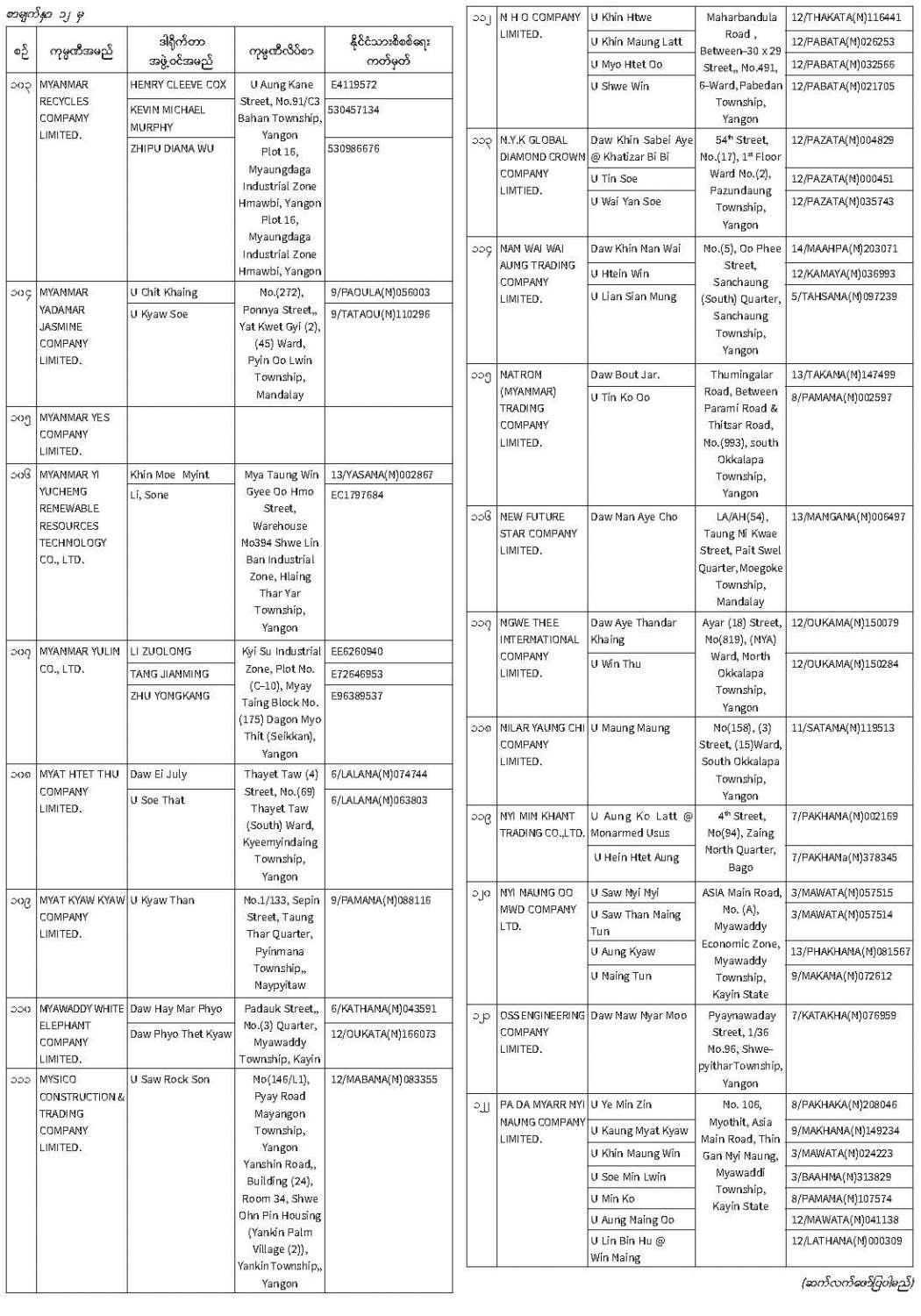 ဦးစီးဌာနနှင့် လုပ်ငန်းများ၏ ကြေညာချက်များ