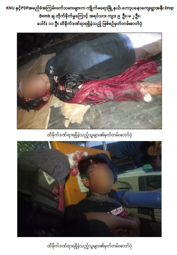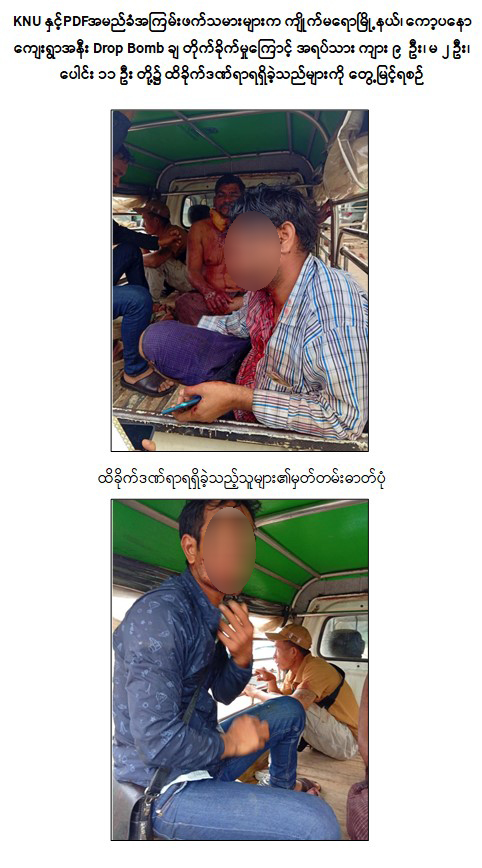 ထိုသို့ လုပ်ဆောင်လျက်ရှိရာ KNU နှင့် PDF အမည်ခံအကြမ်းဖက်သမားများသည် ကျိုက်မရောမြို့နယ်၊ ကော့ပနောကျေးရွာလမ်းဆုံတွင် ရောက်ရှိနေသော ခရီးသည်တင်မော်တော်ယာဉ်တစ်စီးအား စက်တင်ဘာလ ၂ ရက်နေ့တွင် Drop Bomb ချ တိုက်ခိုက်ခဲ့သဖြင့် ယာဉ်မောင်းအပါအဝင် ခရီးသည်အမျိုးသား ၉ ဦး၊ အမျိုးသမီး ၂ ဦး၊ စုစုပေါင်း ၁၁ ဦးတို့တွင် ဗုံးစထိမှန်ဒဏ်ရာရရှိခဲ့ကြောင်း သိရှိရသည်။