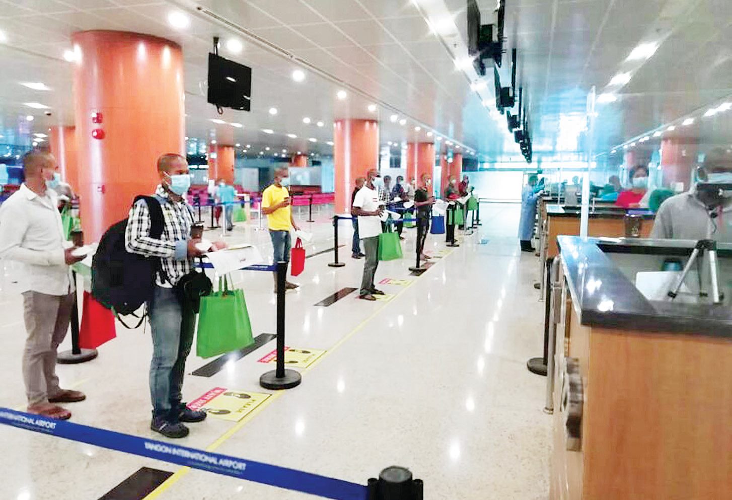 ဖော်ပြပါ ထိန်းသိမ်းခံ မြန်မာနိုင်ငံသားများ လိုက်ပါ စီးနင်းလာသည့် စင်းလုံးငှားအထူးလေယာဉ် ဆိုက်ရောက် ပျံသန်းရေးဆိုင်ရာ ကိစ္စရပ်များအား ပို့ဆောင်ရေးနှင့် ဆက်သွယ်ရေးဝန်ကြီးဌာနက လည်းကောင်း၊ ၎င်းတို့ ရန်ကုန်အပြည်ပြည်ဆိုင်ရာလေဆိပ်သို့ ရောက်ရှိချိန်တွင် လူဝင်မှု ကြီးကြပ်ရေးဆိုင်ရာ ကိစ္စရပ်များအား အလုပ်သမား၊ လူဝင်မှုကြီးကြပ်ရေးနှင့် ပြည်သူ့အင်အား ဝန်ကြီးဌာနက လည်းကောင်း၊ ကျန်းမာရေးစိစစ်ရေးနှင့် သီးသန့်စီစဉ်ပေးသည့် နေရာများ၌ အသွားအလာကန့်သတ်မှု ခုနစ်ရက်နှင့် နေအိမ်တွင် အသွားအလာ ကန့်သတ်မှု ခုနစ်ရက် နေထိုင် စေရေးတို့ကို ကျန်းမာရေးနှင့် အားကစားဝန်ကြီးဌာနနှင့် ရန်ကုန်တိုင်းဒေသကြီး အစိုးရအဖွဲ့တို့က လည်းကောင်း သက်ဆိုင်ရာ အခန်းကဏ္ဍအလိုက် အသီးသီးတာဝန်ယူ ဆောင်ရွက် ပေးခဲ့ကြသည်။