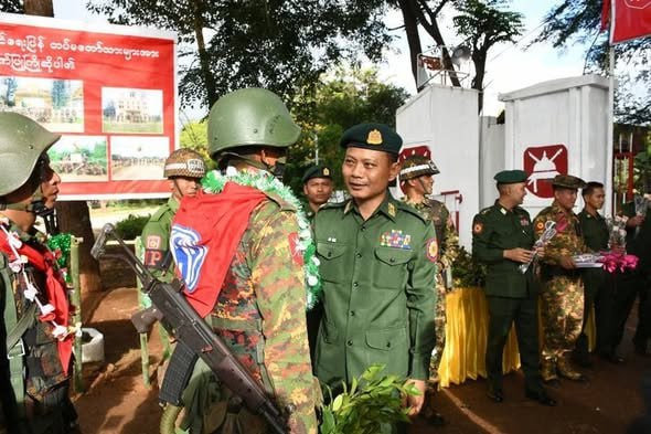 ရှေ့တန်းစစ်မျက်နှာများတွင် ရွပ်ရွပ်ချွံချွံတိုက်ပွဲဝင်ပြီး အောင်ပွဲအလီလီရယူနိုင်ခဲ့သော အောင်ပွဲရရှေ့တန်းပြန်တပ်မတော်သားများအား ဂုဏ်ပြုကြိုဆိုခြင်းကို ယမန်နေ့ညနေပိုင်းတွင် မိုင်းပွန်မြို့ရှိ နယ်မြေခံတပ်၌ပြုလုပ်ရာ အရှေ့အလယ်ပိုင်းတိုင်းစစ်ဌာနချုပ်တိုင်းမှူး ဗိုလ်ချုပ် စိုးမြတ်ထွဋ်နှင့်အဖွဲ့ဝင်များ၊ အရာရှိ၊ စစ်သည်၊ မိသားစုဝင်များ၊ ဌာနဆိုင်ရာ တာဝန်ရှိသူများ၊ ဒေသခံတိုင်းရင်းသား ပြည်သူများ၊ ဆရာ/ဆရာမများ တက်ရောက်ကြသည်။