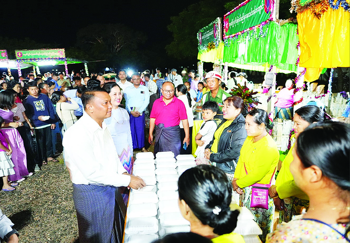 ဦးစွာ တိုင်းမှူးနှင့် တက်ရောက်လာကြသူများက မီးပုံးပျံလွှတ်တင်ခြင်းနှင့် မီးရှူးမီးပန်းများပစ်လွှတ်ခြင်းကို အရာရှိ၊ စစ်သည်၊ မိသားစုဝင်များနှင့်အတူ ပါဝင်ဆင်နွှဲကြသည်။ ထို့နောက် တိုင်းမှူးနှင့်တာဝန်ရှိသူများက စားသောက်ဖွယ်ရာများဖြင့် ဧည့်ခံကျွေးမွေးခြင်း၊ တေးသီချင်းများဖြင့် သီဆိုဖျော်ဖြေခြင်း၊ တေးသရုပ်ဖော်များဖြင့် ကပြဖျော်ဖြေခြင်းတို့ကို လိုက်လံကြည့်ရှုအားပေးပြီး တန်ဆောင်တိုင်ပွဲတော်ကိုပျော်ရွှင်စွာဆင်နွှဲခဲ့ကြကြောင်း သတင်းရရှိသည်။