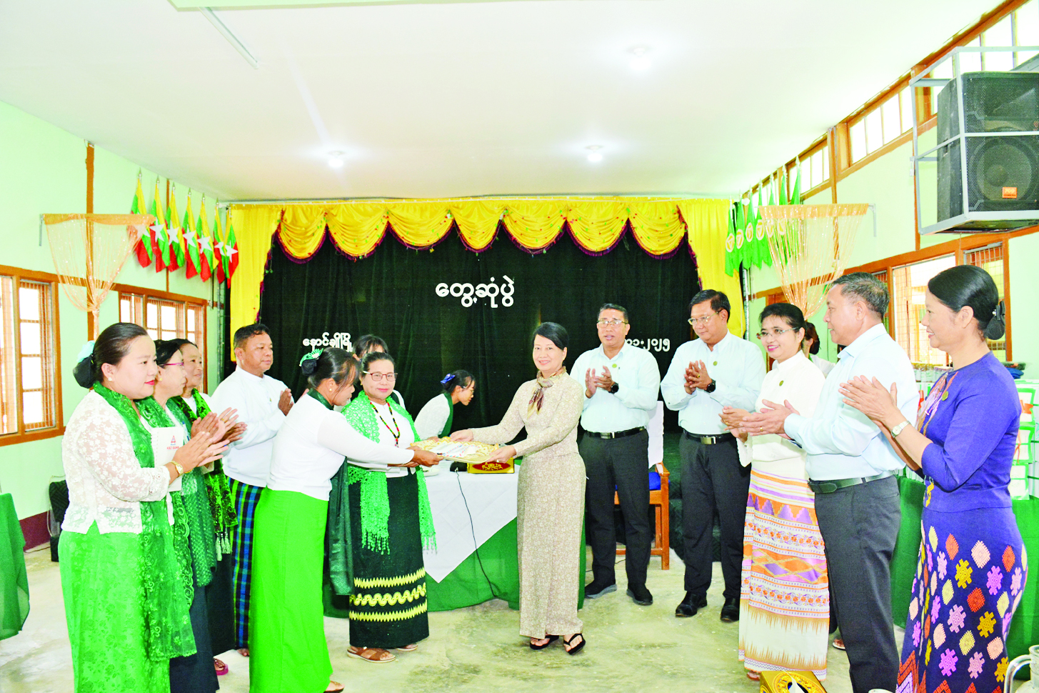 ဆက်လက်၍ ပြည်ထောင်စုဝန်ကြီး၊ ဒုတိယဝန်ကြီးနှင့် ညွှန်ကြား ရေးမှူးချုပ်များက ချီးမြှင့်ငွေများ၊ ကျောင်းဝတ်စုံများ၊ ပုံနှိပ်စာအုပ်များ၊ ဗလာစာအုပ်နှင့် စာရေးကိရိယာများ၊ ကျောပိုးအိတ်များကို ပေးအပ်ရာ ကျောက်မဲမြို့နယ်နှင့် သီပေါမြို့နယ် မြို့နယ်ပညာရေးမှူရုံးများမှ တာဝန်ရှိသူများနှင့် ကျောင်းသား ကျောင်းသူများက လက်ခံရယူကြပြီး တာဝန်ရှိသူတစ်ဦးက ကျေးဇူးတင်စကား ပြန်လည်ပြောကြားသည်။