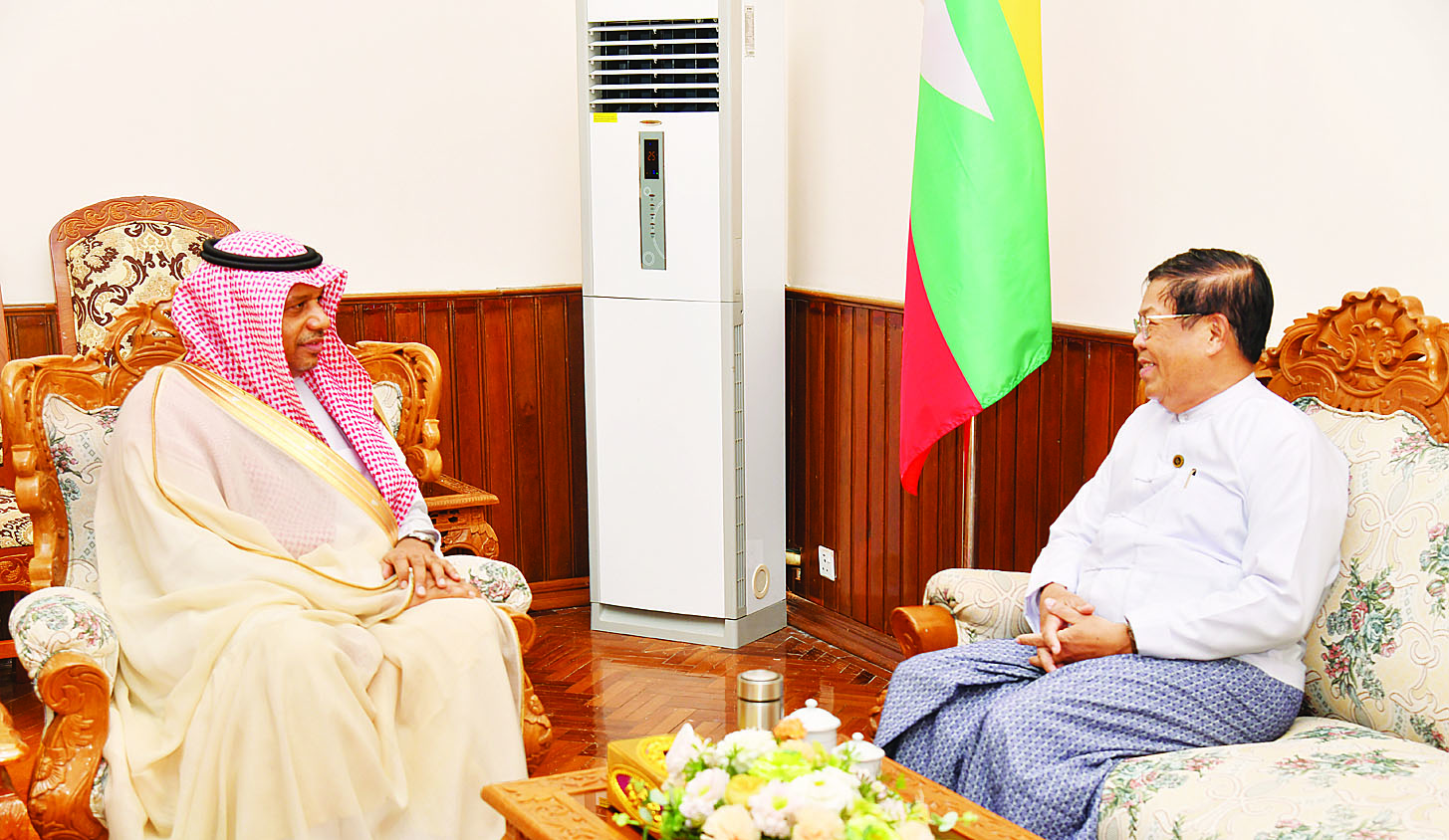 ဆော်ဒီအာရေဗျ သံအမတ်ကြီးနှင့်တွေ့ဆုံစဉ် မြန်မာ - ဆော်ဒီအာရေဗျ နှစ်နိုင်ငံအကြား ဆက်ဆံရေးနှင့် ပူးပေါင်းဆောင်ရွက်မှု တိုးမြှင့်ရေးနှင့် ကုန်သွယ်ရေးနှင့် ရင်းနှီးမြှုပ်နှံမှုကဏ္ဍများတွင် နှစ်နိုင်ငံအကျိုးတူ ပူးပေါင်းဆောင်ရွက်မှုမြှင့်တင်ရေးကိစ္စရပ်များအပေါ် ရင်းနှီးပွင့်လင်းစွာ အမြင်ချင်း ဖလှယ်ဆွေးနွေးခဲ့ကြသည်။