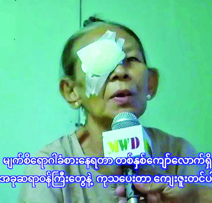 ၂။ ကျွန်မနာမည်ကတော့ ခေါ်ခင်မာဦးလို့ ခေါ်ပါတယ်။ ဆီးချိုသွေးချိုနဲ့ အကြောကို လာပြီးတော့ ပြသတာပါ။ အကုန်လုံးလုပ်ထားကိုင်ထားတာတွေက အစစီစဉ်ထားတာတွေ အားလုံးကောင်းပါတယ်။ အလွန်ကိုကျေးဇူးတင်တယ်၊ အားရတယ်။ တပ်မတော်က လာရောက်ကုသတဲ့ ဆရာဝန်တွေရော အကုန်လုံးကို ကျေးဇူးအများကြီးတင်ပါတယ်။