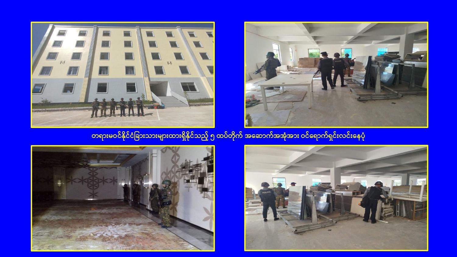 ထို့ပြင် ရွှေကုက္ကိုလ်နယ်မြေအတွင်း အွန်လိုင်းလိမ်လည်မှုများလုပ်ဆောင်ရာတွင် အသုံးပြုခဲ့သည့် အဆောက်အအုံများအား နိုဝင်ဘာ ၁၈ ရက်မှ စတင်စစ်ဆေးခဲ့ရာ ယနေ့အထိ တရားမဝင်အဆောက်အအုံ ၁၄၀ လုံးကို စစ်ဆေးတွေ့ရှိရပြီး အဆိုပါ အဆောက်အအုံများကို ပြန်လည်အသုံးပြုမှုမရှိစေရေးအတွက် သိမ်းဆည်းချိပ်ပိတ်ခြင်းများကို ဆက်လက်ဆောင်ရွက်လျက်ရှိရာ ယနေ့အတွင် တရားမဝင်အဆောက်အအုံ ၁၃ လုံးကို ထပ်မံချိပ်ပိတ်သိမ်းဆည်းနိုင်ခဲ့ပြီး တရားမဝင်အဆောက်အအုံ စုစုပေါင်း ၁၃၂ လုံး ချိပ်ပိတ်သိမ်း ဆည်းပြီးဖြစ်ကြောင်း သိရှိရသည်။