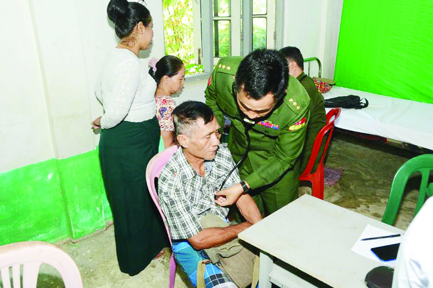 ဧရာဝတီမြစ်ကြောင်းတစ်လျှောက်ရှိ ဒေသခံပြည်သူများအား ကျန်းမာရေးစောင့်ရှောက်မှုလုပ်ငန်းများ ဆောင်ရွက်ပေးရန်အတွက် တပ်မတော်မြစ်တွင်းသွားဆေးရုံ ရေယာဉ်(ရွှေပုဇွန်)၊ မြစ်ရေယာဉ် (စကု)တို့နှင့်အတူ လိုက်ပါလာသည့် တပ်မတော်မှ ပါရဂူများ၊ ဆေးမှူးများ၊ သူနာပြုများပါဝင်သော တပ်မတော်နယ်လှည့် အထူးကုဆေးအဖွဲ့သည် ယနေ့နံနက်ပိုင်းတွင် မော်လမြိုင်ကျွန်းမြို့နယ် ရွာသစ်ကျေးရွာရှိ သီရိမင်္ဂလာ မိုးကုတ်ဓမ္မရိပ်သာကျောင်းတိုက်၌ အခြေပြု၍ အဆိုပါကျေးရွာနှင့် ပတ်ဝန်းကျင်ကျေးရွာများမှ ဒေသခံပြည်သူ ၅၈၃ ဦးအား ကျန်းမာရေးစောင့်ရှောက်မှုလုပ်ငန်းများ ဆောင်ရွက်ပေးသည်။