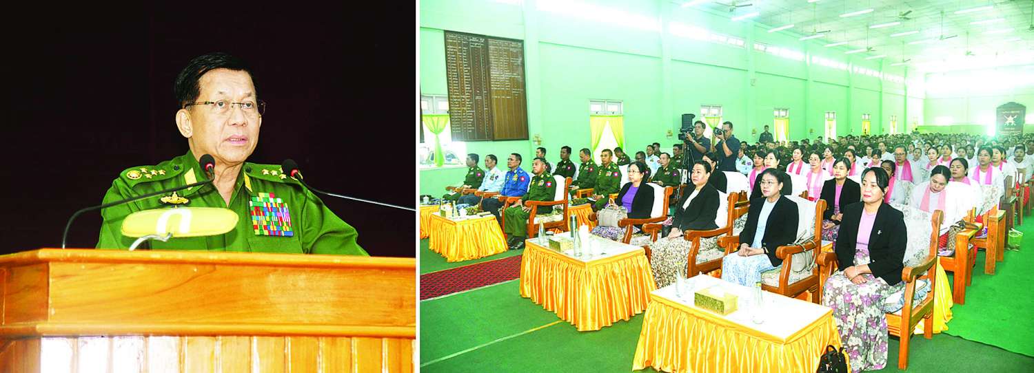 နိုင်ငံတော်လုံခြုံရေးနှင့် အေးချမ်းသာယာရေးကော်မရှင်ဥက္ကဋ္ဌ တပ်မတော်ကာကွယ်ရေးဦးစီးချုပ် ဗိုလ်ချုပ်မှူးကြီး မင်းအောင်လှိုင် မကွေးတပ်နယ်မှ အရာရှိ၊ စစ်သည်မိသားစုများအား တွေ့ဆုံအမှာစကားပြောကြား