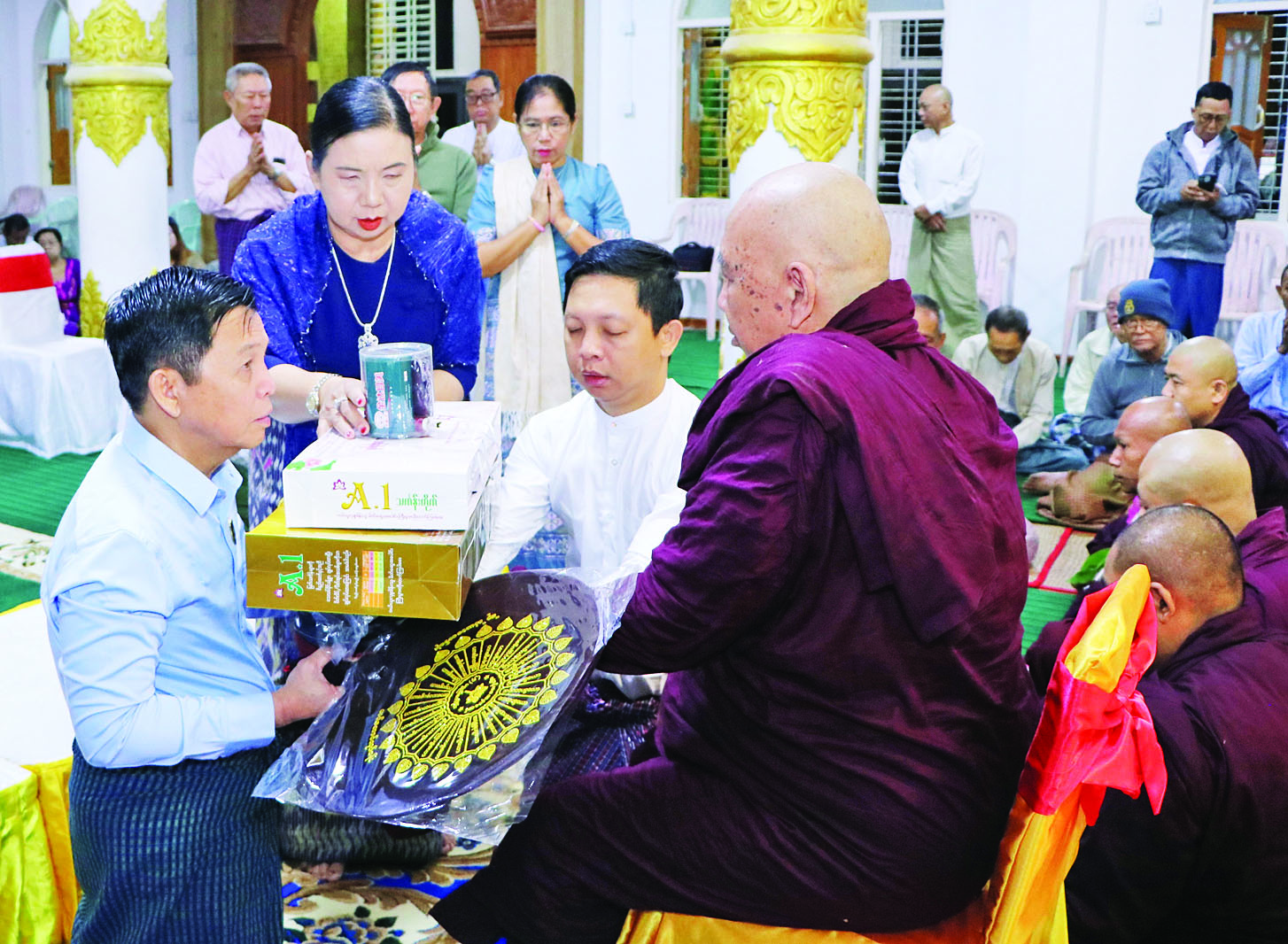 ထို့နောက် ပြည်ထောင်စုဝန်ကြီးက ဆရာတော်ကြီးများအား အရုဏ်ဆွမ်းဆက်ကပ်လှူဒါန်းပြီး ဧည့်ပရိသတ်များအား နံနက်စာကျွေးမွေးလှူဒါန်းသည်။