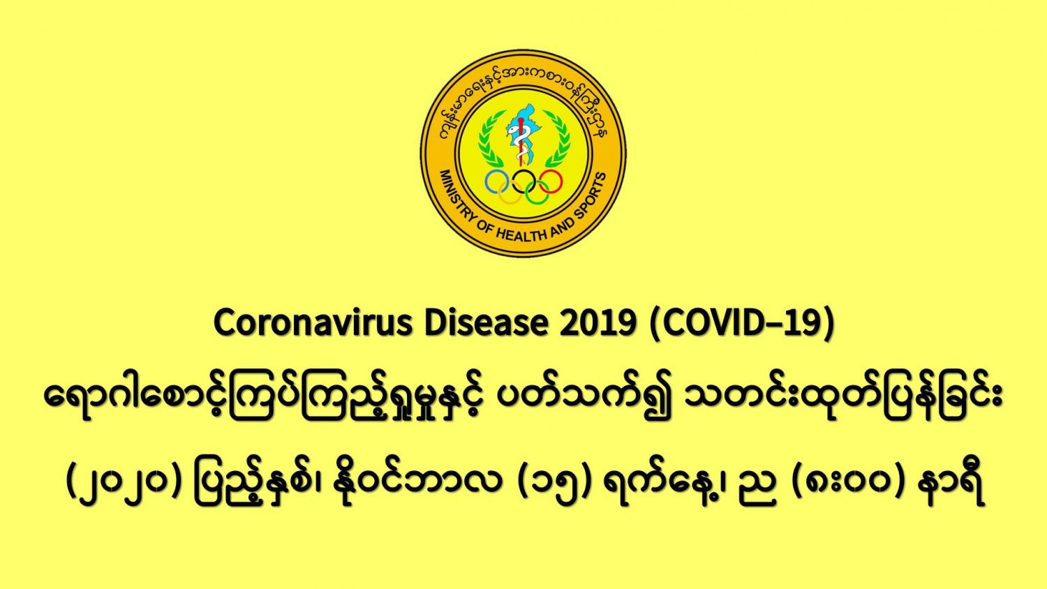 (၁၄-၁၁-၂၀၂၀) ရက်နေ့၊ ည (၈:၀၀) နာရီမှ (၁၅-၁၁-၂၀၂၀) ရက်နေ့၊ ည (၈:၀၀) နာရီအတွင်း ဓာတ်ခွဲနမူနာ စုစုပေါင်း (၁၃,၃၄၇) ခုအား စစ်ဆေးပြီးစီးခဲ့ရာ COVID-19 ရောဂါ ဓာတ်ခွဲအတည်ပြု လူနာသစ် (၉၈၃) ဦး တွေ့ရှိရပါသည်။
