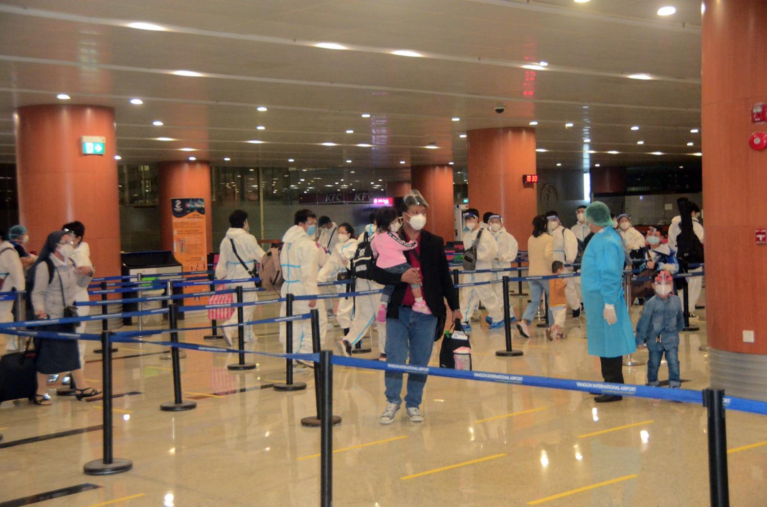 ၎င်းတို့ ရန်ကုန်အပြည်ပြည်ဆိုင်ရာလေဆိပ်သို့ ရောက်ရှိချိန်တွင် လူဝင်မှုကြီးကြပ် ရေး၊ ကျန်းမာရေး စိစစ်ရေး၊ သီးသန့်စီစဉ်ပေး သည့်နေရာ / သတ်မှတ်ဟိုတယ်များ၌ အသွားအလာ ကန့်သတ်မှု (၇)ရက် နှင့် နေအိမ်တွင် အသွားအလာကန့်သတ်မှု (၇) ရက် နေထိုင်စေရေးတို့ကို အလုပ်သမား၊ လူဝင်မှုကြီးကြပ်ရေးနှင့်ပြည်သူ့အင်အားဝန်ကြီးဌာန၊ ကျန်းမာရေးနှင့် အားကစား ဝန်ကြီးဌာနနှင့် ရန်ကုန်တိုင်းဒေသကြီးအစိုးရအဖွဲ့တို့မှ သက်ဆိုင်ရာ အခန်းကဏ္ဍအလိုက် တာဝန်ယူ ဆောင်ရွက် ပေးခဲ့သည်။