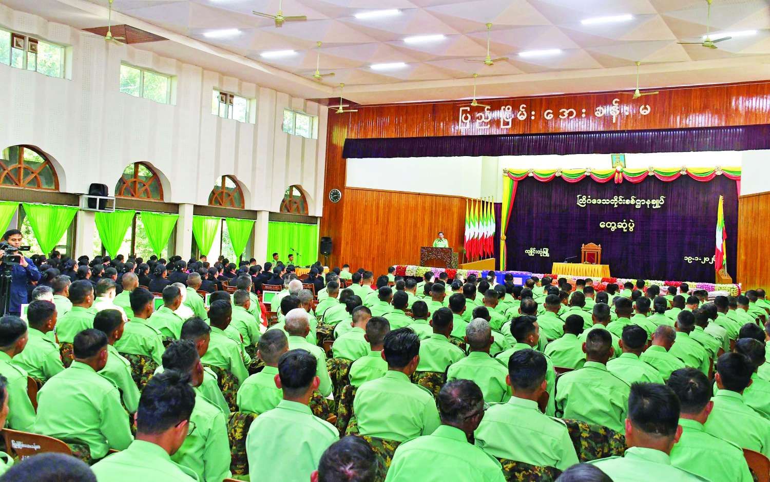 ထိုသို့ တွေ့ဆုံအမှာစကားပြောကြားရာတွင် တြိဂံဒေသတိုင်းစစ်ဌာနချုပ်နယ်မြေအနေဖြင့် ၂၀၂၅ ခုနှစ်ပါတီစုံဒီမိုကရေစီအထွေထွေရွေးကောက်ပွဲအပိုင်း(၁)နှင့် (၂) အား အောင်မြင်စွာကျင်းပနိုင်ခဲ့သည်ကို တွေ့ရှိရကြောင်း၊ မကြာမီကျင်းပမည့် အပိုင်း(၃)ကိုလည်း အောင်အောင်မြင်မြင်ဖြင့် ကျင်းပနိုင်ရေး ဝိုင်းဝန်းပူးပေါင်းဆောင်ရွက်သွားကြရန် မှာကြားလိုကြောင်း၊ တပ်မတော်အနေဖြင့် နိုင်ငံရေးအစိုးရများ မည်ကဲ့သို့ပင် ပြောင်းလဲသည်ဖြစ်စေနိုင်ငံတော်လုံခြုံရေးနှင့်ကာကွယ်ရေး တာဝန်များကို ထမ်းဆောင်ရမည်ဖြစ်ကြောင်း၊ တပ်မတော်အနေဖြင့် လွတ်လပ်ရေးရရှိပြီးချိန်မှစ၍ နိုင်ငံတော်တွင်ဖြစ်ပေါ်ခဲ့သည့် ပြည်တွင်းလက်နက်ကိုင်ပဋိပက္ခများကို ဖြေရှင်းနေရသည်ကိုသမိုင်းကြောင်း အထောက်အထားများအရသိရှိနိုင်ကြောင်း၊ ပြည်တွင်းလက်နက်ကိုင် ပဋိပက္ခများကို ထိန်းသိမ်းဆောင်ရွက်ရမည်မှာ မြန်မာနိုင်ငံရဲတပ်ဖွဲ့၏ တာဝန်ဖြစ်သော်လည်း လိုအပ်ချက်အရ တပ်မတော်မှ ပါဝင်ဆောင်ရွက်နေရခြင်းဖြစ်ကြောင်း၊ မြန်မာနိုင်ငံရဲတပ်ဖွဲ့ကိုလည်း စွမ်းရည်မြှင့်တင်ရေးဆောင်ရွက်ပေးလျက်ရှိကြောင်း၊ တပ်မတော်သည် နိုင်ငံတော်ကာကွယ်ရေးတာဝန်များကို ထမ်းဆောင်နေခြင်းဖြစ်ကြောင်း၊ ထိုသို့ ဆောင်ရွက်နိုင်ရန်အတွက် စွမ်းရည်နှင့်စွမ်းပကားများရှိရန်လိုကြောင်း၊ အရည်အချင်းပြည့်ဝသည့် တပ်မတော်တိုက်စွမ်းအားရှိသည့် တပ်မတော်ဖြစ်ရန်လိုကြောင်း၊ ထိုသို့အရည်အချင်းပြည့်ဝရန်အတွက် လေ့ကျင့်သားပြည့်ဝနေရန်လိုကြောင်း၊ တပ်မတော်သားတစ်ဦးချင်းအနေဖြင့် တိုက်ရည်ခိုက်ရည်ရှိရမည်၊ ရဲစွမ်းသတ္တိရှိရမည်၊ စစ်နည်းဗျူဟာနှင့် စစ်လက်နက်ပစ္စည်းများအပေါ် ကျွမ်းကျင်မှုရှိရမည်ဖြစ်ကြောင်း။