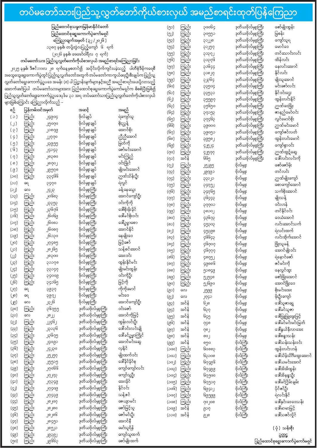 တပ်မတော်သားပြည်သူ့လွှတ်တော်ကိုယ်စားလှယ် အမည်စာရင်းထုတ်ပြန်ကြေညာ