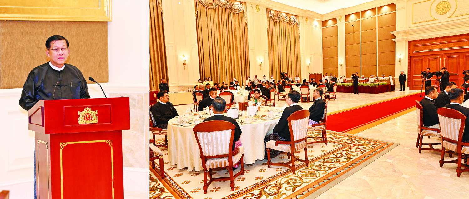 ပြည်ထောင်စုသမ္မတမြန်မာနိုင်ငံတော် ယာယီသမ္မတ နိုင်ငံတော်လုံခြုံရေးနှင့် အေးချမ်းသာယာရေးကော်မရှင်ဥက္ကဋ္ဌ ဗိုလ်ချုပ်မှူးကြီး မင်းအောင်လှိုင်က အပြည်ပြည်ဆိုင်ရာတရားရုံး (ICJ) ၌ တရားရင်ဆိုင်ကြားနာပွဲသို့ သွားရောက်ဖြေရှင်းခဲ့သည့် မြန်မာကိုယ်စားလှယ်အဖွဲ့အား ဂုဏ်ပြုညစာစားပွဲဖြင့်တည်ခင်းဧည့်ခံ