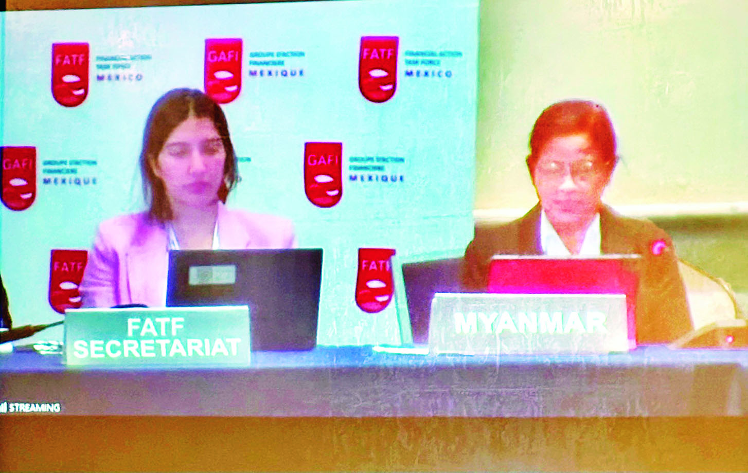 အစည်းအဝေးများတွင် မြန်မာနိုင်ငံတော်ဗဟိုဘဏ်ဥက္ကဋ္ဌက မြန်မာနိုင်ငံအနေဖြင့် ငွေကြေးခဝါချမှု၊ အကြမ်းဖက်မှုကို ငွေကြေးထောက်ပံ့မှုနှင့် လူအများအပြားသေကျေစေသည့် လက်နက်များ ပြန့်ပွားရေးကို ငွေကြေးထောက်ပံ့မှု တိုက်ဖျက်ရေးလုပ်ငန်းများအား စဉ်ဆက်မပြတ် အပြည့်အဝအကောင်အထည်ဖော် ဆောင်ရွက်လျက်ရှိကြောင်း၊ အကောင်အထည်ဖော် ဆောင်ရွက်ရေးအစီအမံ (Action Plan)ပါအချက်များကို ပြည်တွင်း လူ့စွမ်းအားအရင်းအမြစ်များဖြင့် ဆောင်ရွက်ခဲ့ရာ ကြီးမားစွာလိုက်နာဆောင်ရွက်ခြင်း အဆင့်သတ်မှတ်ချက် (၁၀) ချက်ထိ တိုးမြှင့်ရရှိလာခဲ့ကြောင်း၊ ဆောင်ရွက်ရန်ကျန်ရှိသည့် (၅) ချက်ကို အချိန်ကာလသတ်မှတ်၍ ပြီးစီးနိုင်ရေး ကြိုးပမ်းဆောင်ရွက်လျက်ရှိကြောင်း၊ ဥပဒေပိုင်းဆိုင်ရာမူဘောင်များ ပိုမိုခိုင်မာမှုရှိစေရန် အာရှပစိဖိတ်ပူးတွဲအဖွဲ့ (Asia Pacific Joint Group – APJG) ၏ အကြံပြုချက်များနှင့်အညီ အကြမ်းဖက်မှုတိုက်ဖျက်ရေးဥပဒေနှင့် ယုံကြည်အပ်နှံမှုအက်ဥပဒေများကို ပြင်ဆင်ထုတ်ပြန်ခဲ့ကြောင်း၊ သက်သေခံပစ္စည်းများ စီမံထိန်းသိမ်းရေးနှင့် စီမံခန့်ခွဲရေးဥပဒေကိုလည်း ပြဋ္ဌာန်းထုတ်ပြန်ခဲ့ ကြောင်း။