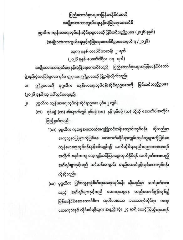 ပုဂ္ဂလိက ကျန်းမာရေးလုပ်ငန်းဆိုင်ရာဥပဒေကို ပြင်ဆင်သည့်ဥပဒေ (၂၀၂၆ ခုနှစ်)