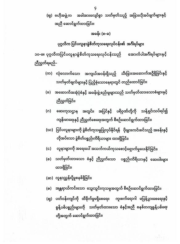 ဦးစီးဌာနနှင့် လုပ်ငန်းများ၏ ကြေညာချက်များ