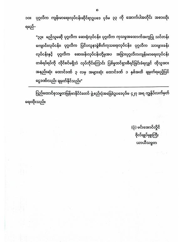 ဝန်ကြီးဌာန ကြေညာချက်များ
