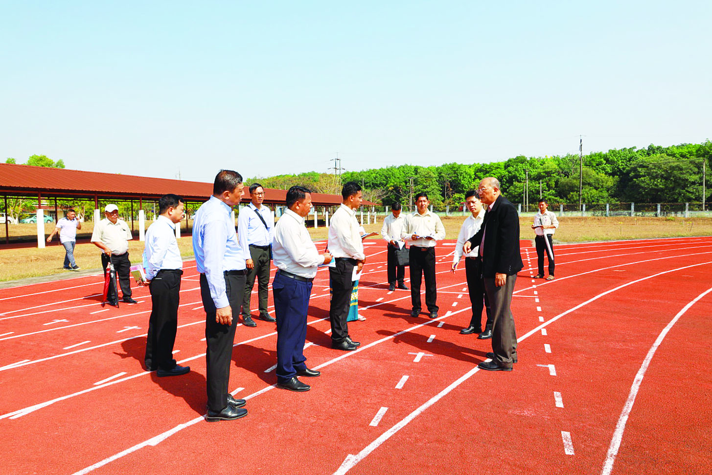 ကြည့်ရှုစဉ် ပြည်ထောင်စုဝန်ကြီးက ဘောလုံးကွင်းမြက်ခင်း စိမ်းလန်းစိုပြည်ရေးနှင့် ရေဖျန်းစနစ် ကောင်းမွန်ရေးအတွက် ရေလှောင်ကန်တစ်ခု တည်ဆောက်နိုင်ရေး စီစဉ်ဆောင်ရွက်သွားရန်နှင့် အားကစားဥယျာဉ်အတွင်းရှိ အဆောက်အအုံနှင့် အိပ်ဆောင်များ ရေရှည်တည်တံ့ရေးအတွက် ထိန်းသိမ်းစောင့်ရှောက်သွားရန်၊ အိမ်ရာများတွင် နေထိုင်သည့်ဝန်ထမ်းများ သက်သာချောင်ချိစေရေးအတွက် မြေနေရာလွတ်များတွင် သီးပင်၊ စားပင်များကို တစ်ပိုင်တစ်နိုင် စိုက်ပျိုးသွားရန်နှင့် လုံခြုံရေးအထူးဂရုစိုက်‌၍ နေထိုင်သွားရန်လိုကြောင်းနှင့် တည်ဆောက်ရေးလုပ်ငန်းများကို သတ်မှတ်စံချိန်စံညွှန်းနှင့်အညီ သတ်မှတ်ကာလအတွင်း အချိန်မီပြီးစီးစေရေးအတွက် စိစစ်ကြပ်မတ်ဆောင်ရွက်သွားရန် တာဝန်ရှိသူများအား မှာကြားသည်။