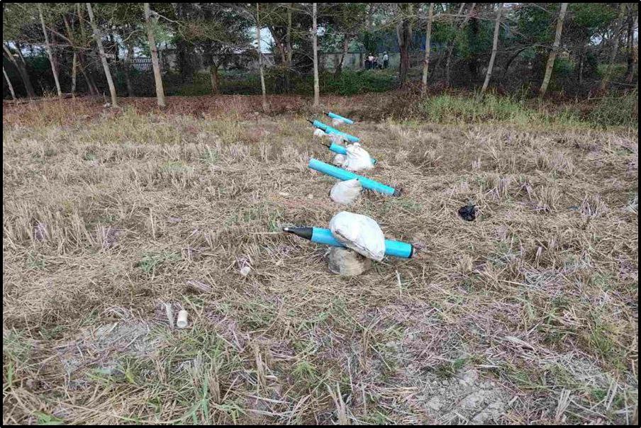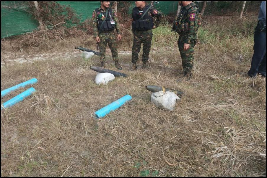 လှည်းကူးမြို့နယ်၊ ဆင်ဖုန် (မြောက်) ကျေးရွာအနီးရှိ လယ်ကွင်း၌ ပစ်ခတ်ရန် ပြင်ဆင်ထားသည့် ရှော့တိုက်ဒုံးများ တွေ့ရှိ