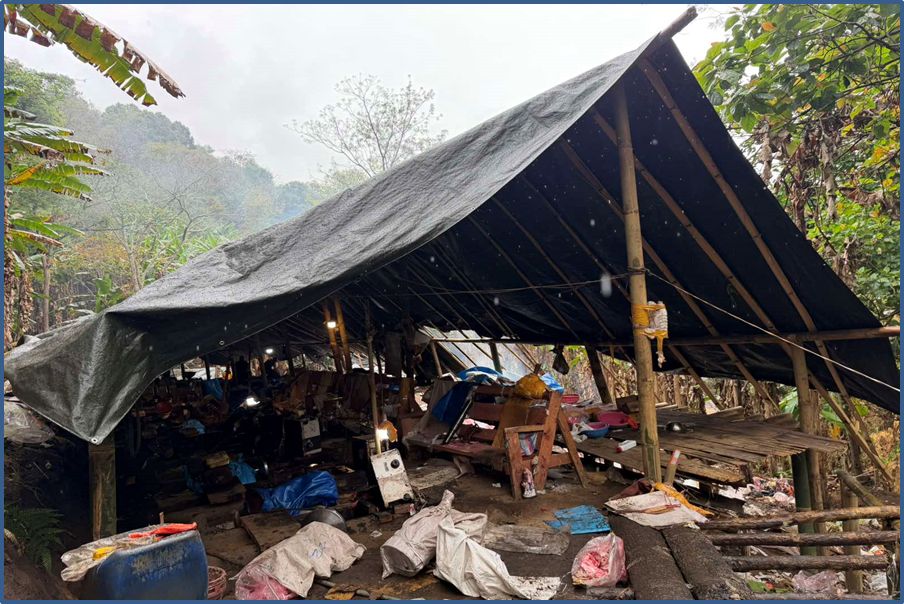 ရှမ်းပြည်နယ်(အရှေ့ပိုင်း)၊ တာချီလိတ်မြို့၏ အနောက်မြောက်ဘက် ၃၀ ကီလိုမီတာခန့်အကွာ၌ မူးယစ်ဆေးဝါးများထုတ်လုပ်နေကြောင်း သတင်းအရ လုံခြုံရေးတပ်ဖွဲ့ ဝင်များပါဝင်သောပူးပေါင်းအဖွဲ့က နယ်မြေရှင်းလင်းခြင်းများ သွားရောက်ဆောင်ရွက်ရာ ဖေဖော်ဝါရီ ၂၄ ရက် မွန်းလွဲ ၂ နာရီခန့်တွင် မိုင်းဆတ်မြို့နယ်၊ မိုင်းခုတ်မြို့၏ အရှေ့တောင်ဘက် ၁၉ ကီလိုမီတာ (ဝမ်လုံးကျေးရွာ၏ တောင်ဘက် ၈ ကီလိုမီတာခန့်) အကွာနေရာ၌ မူးယစ်ဆေးဝါးများနှင့် မူးယစ်ဆေးဝါးချက်လုပ်ရာတွင် အသုံးပြုသည့် ပစ္စည်းများဖြစ်သော Promethazine တံဆိပ်ပါ ချောင်းဆိုးပျောက်ဆေးရည် ၁၀၀ ဘူး (၅၀ ဘူးစီပါ ၂ ဖာ)၊ Food Colour တံဆိပ်ပါ အပြာရောင်ဆေးဘူးအကြီး ၁၈ ဘူးနှင့် ဘူးအသေး ၄၁ ဘူး၊ စိစစ်ဆဲဆေးရည်ပုလင်းအသေး ၅၀၀ လုံး၊ မျောက်ခေါင်း တံဆိပ်ပါအနံ့ဆေးရည် ၁၅ ဖာ (တစ်ဖာလျှင် ဘူး ၂၀ ခန့်)၊ စိစစ်ဆဲအဖြူရောင်အမှုန့် ဆာလာအိတ် တစ်ဝက်ခန့်စီပါ ၆ အိတ်၊ ဘိန်းမည်း ၃ ထုတ်၊ ဘိန်းဖြူဘလောက်တုံး ၁ တုံး၊ စိစစ်ဆဲ အနက်ရောင် အထုတ် ၁ ထုတ်၊ အဖြူရောင်ပုံဆောင်ခဲ ၁ ကီလိုဂရမ်စီပါ ၉ ထုတ်၊ တိပ်ဝါများပိတ်ထားသည့် WY ဆေးပြား ၆၀၀၀ ပြားခန့်ပါ ၁၂ စည်း၊ ၉၉၉ တံဆိပ်ပါ တိပ်ဝါပတ်လျက် WY ဆေးပြား ၁၀၀၀၀ ခန့်ပါ ၁၀ စည်း၊ ထုတ်ပိုးရခြင်းမရှိသေးသည့် WY ဆေးပြား ဆာလာအိတ် တစ်ဝက်ခန့်စီပါ ၁၂ အိတ်၊ WY ဆာလာအိတ် တစ်ဝက်ခန့်စီထည့်ထားသည့် ဆေးပြားထုတ်လုပ်ရာတွင် အသုံးပြုသည်ဟုယူဆရသည့် ဆေးမှုန့် ၁၂ အိတ်၊ ရိုက်တံမို ၂ ဖာနှင့် ဆက်စပ်ပစ္စည်းများ ထည့်သွင်းထားသည့် အပြာရောင်ဘူးကြီး ၁၄ ဘူး၊ ကီလိုချိန်စက် ၃ လုံး၊ မီးစက်အကြီး ၁ လုံး၊ မွှေစက်အသေး ၃ လုံးနှင့် အခြောက်ခံဗန်းဆိုဒ်စုံ ၃၂ ခုတို့ကို တွေ့ရှိသိမ်းဆည်း ရမိခဲ့ကြောင်းသိရှိရသည်။