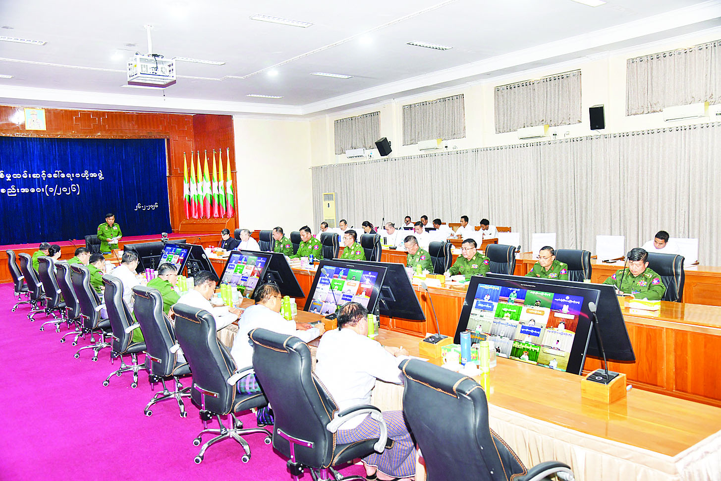 ထို့နောက် ပြည်သူ့စစ်မှုထမ်းဆင့်ခေါ်ရေးဗဟိုအဖွဲ့ဝင်များ၊ နေပြည်တော်ကောင်စီ၊ တိုင်းဒေသကြီး၊ ပြည်နယ်ပြည်သူ့စစ်မှုထမ်းဆင့်ခေါ်ရေးဥက္ကဋ္ဌများက သက်ဆိုင်ရာကဏ္ဍအလိုက် အကြံပြုဆွေးနွေးရာ ပြည်သူ့စစ်မှုထမ်းဆင့်ခေါ်ရေးဗဟိုအဖွဲ့ဥက္ကဋ္ဌက လိုအပ်သည်များကို ပေါင်းစပ်ညှိနှိုင်းပေးပြီး နိဂုံးချုပ်အမှာစကားပြောကြားကာ အစည်းအဝေးကို ရုပ်သိမ်းခဲ့ကြောင်း သတင်းရရှိသည်။