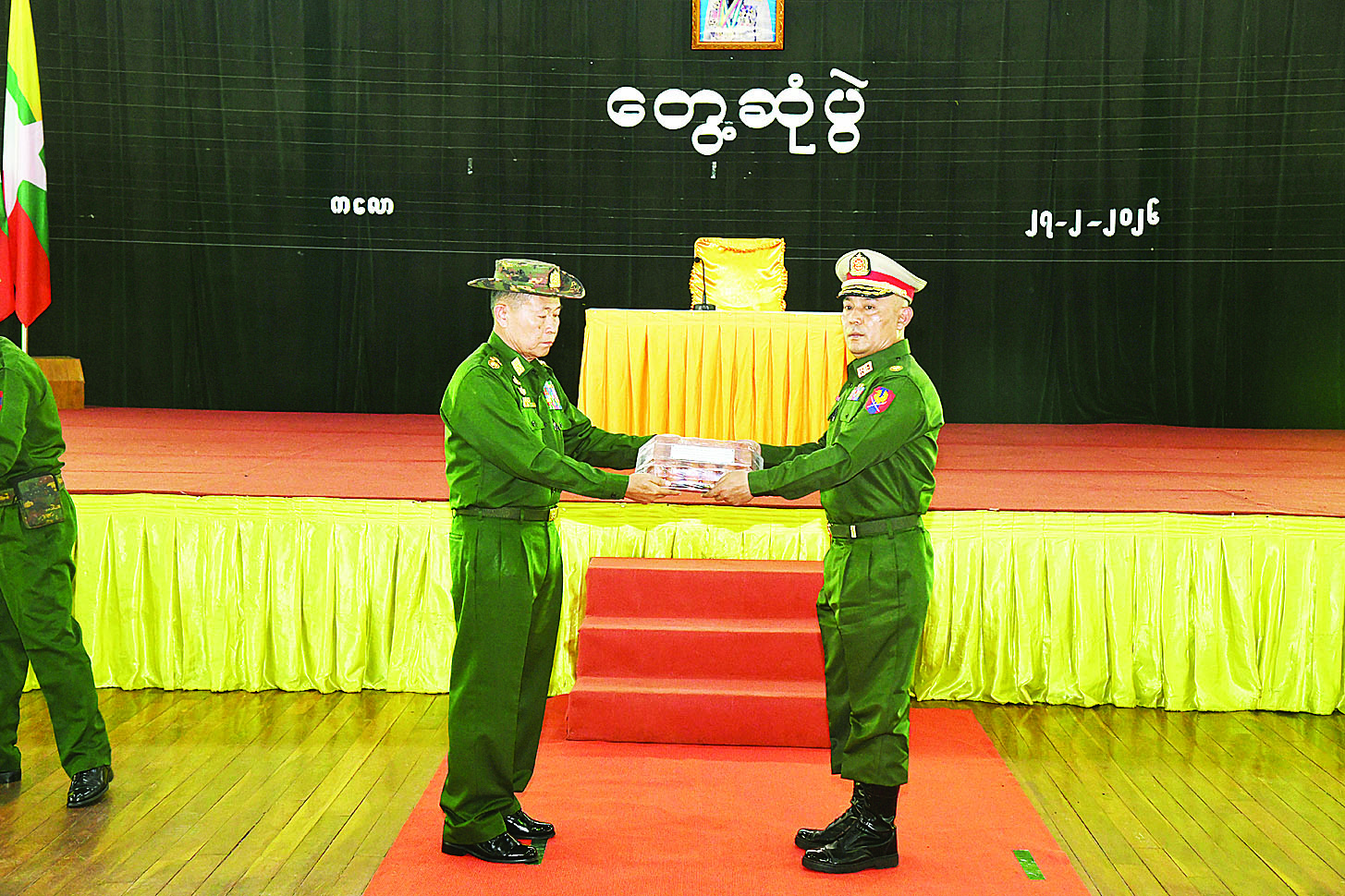 တပ်မတော်သားများသည် သစ္စာအဓိဌာန်(၄)ချက်ကို ရွတ်ဆိုနေကြသူများဖြစ်ပြီး နိုင်ငံတော်နှင့် ပြည်သူကို သစ္စာခံထားသူများဖြစ်၍ ၂၄ နာရီပေးအပ်သည့် အမိန့်နှင့်တာဝန်များကို သင်ကြားလေ့ကျင့်ပေးသည့် စစ်ပညာရပ်များကိုအသုံးချ၍ ကျေပွန်စွာထမ်းဆောင်နိုင်ရန်လိုအပ်ကြောင်း၊ ထိုသို့ထမ်းဆောင်ရာတွင် တုံးတိုက်တိုက်၊ ကျားကိုက်ကိုက် စိတ်ဓာတ်၊ လှေခွက်ချည်ကျန် အလံမလှဲသည့် စိတ်ဓာတ်တို့ဖြင့် မဆုတ်မနစ် ထမ်းဆောင်ကြရန်လိုကြောင်း၊ စစ်ဆင်ရေး၊ လုံခြုံရေးတာဝန်ထမ်းဆောင်ရာတွင် သင်ကြားပေးသည့် စစ်ပညာများကို မှန်မှန်ကန်ကန် အသုံးချရန်နှင့်တပ်ဆင်ပေးထားသည့် လက်နက်၊ ခဲယမ်း၊ ကိရိယာများကို အပြည့်အဝ ထိရောက်စွာအသုံးချရန်လိုကြောင်း၊ သို့မှသာ ပြည်သူ၏ အသက်အိုးအိမ်စည်းစိမ်ကို ကောင်းမွန်စွာကာကွယ် စောင့်ရှောက်နိုင်မည်ဖြစ်ကြောင်း ဦးစွာပြောကြားသည်။