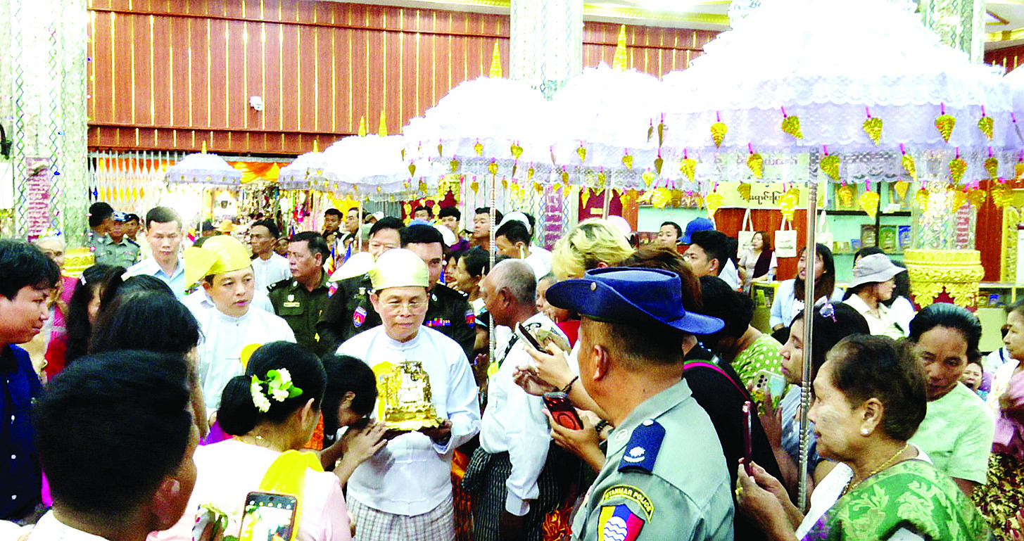 ထို့နောက် ပြည်ထောင်စုဝန်ကြီးနှင့် တိုင်းဒေသကြီးဝန်ကြီးချုပ်တို့သည် မြတ်စွယ်တော်အတွက် နဝကမ္မအလှူငွေများကို ပေးအပ်လှူဒါန်းကြရာ မြတ်စွယ်တော်ဂေါပကအဖွဲ့ဝင်များက လက်ခံရယူကြသည်။