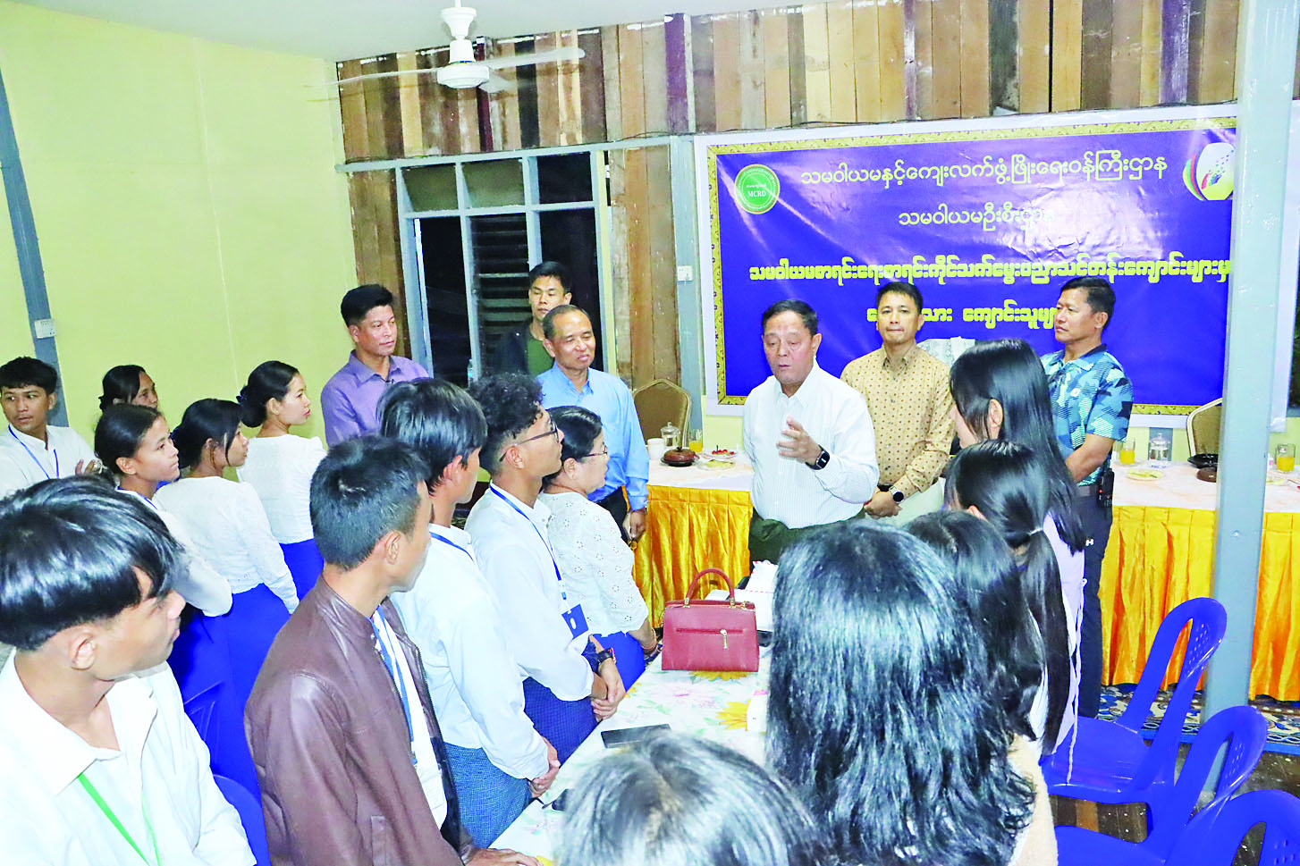 သမဝါယမနှင့်ကျေးလက်ဖွံ့ဖြိုးရေးဝန်ကြီးဌာန၊ သမဝါယမဦးစီးဌာန၊ သမဝါယမစာရင်းရေးစာရင်းကိုင်သက်မွေးပညာသင်တန်းကျောင်း (မကွေး၊ မန္တလေး၊ တောင်ကြီး၊ မော်လမြိုင်၊ ပုသိမ်) မှ လေ့လာရေးခရီးလာရောက်ကြသည့် ပထမနှစ်နှင့် ဒုတိယနှစ် ကျောင်းသား ကျောင်းသူများအား တွေ့ဆုံပွဲကို ယမန်နေ့ညပိုင်းက နေပြည်တော်၊ ဇမ္ဗူသီရိမြို့နယ် သပြေအေးကျောင်းတိုက်၌ကျင်းပရာ ပြည်ထောင်စုဝန်ကြီး ဦးလှမိုး၊ ဒုတိယဝန်ကြီး၊ အမြဲတမ်းအတွင်းဝန်၊ ညွှန်ကြားရေးမှူးချုပ်များနှင့် တာဝန်ရှိသူများ၊ သမဝါယမစာရင်းရေးစာရင်းကိုင် သက်မွေးပညာသင်တန်းကျောင်းများမှ ကျောင်းအုပ်ကြီးများ၊ ကြီးကြပ်သူဆရာ ဆရာမများနှင့် ကျောင်းသား ကျောင်းသူများတက်ရောက်ကြသည်။