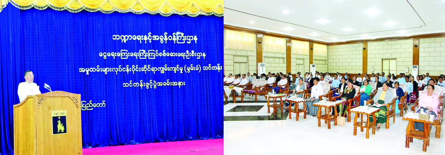 အခမ်းအနားတွင် ပြည်ထောင်စုဝန်ကြီးက ယနေ့ဖွင့်လှစ်သည့် အမှုထမ်းများ လုပ်ငန်းပိုင်းဆိုင်ရာ ကျွမ်းကျင်မှု (မွမ်းမံ) သင်တန်းတွင် နိုင်ငံတော်၏ စီးပွားရေးဦးတည်ချက်များနှင့် ဘဏ္ဍာရေးနှင့် အခွန်ဝန်ကြီးဌာန၏ မူဝါဒများ၊ ပြုပြင်ပြောင်းလဲမှုလုပ်ငန်းစဉ်များနှင့် ရှေ့လုပ်ငန်းစဉ်များကို ပိုမိုသိရှိနားလည်ပြီး လက်တွေ့လုပ်ငန်းများ ဆောင်ရွက်ရာတွင် လုပ်ငန်းစွမ်းဆောင်ရည် မြင့်မားလာစေရန်၊ နိုင်ငံ့ဝန်ထမ်းဥပဒေ၊ နည်းဥပဒေ၊ ဘဏ္ဍာရေးလုပ်ထုံးလုပ်နည်းနှင့် ဌာန၏ လုပ်ငန်းတာဝန်များဖြစ်သည့် အသေးစားငွေရေးကြေးရေးကုမ္ပဏီများ ကြီးကြပ်စစ်ဆေးခြင်း၊ ပုဂ္ဂလိက အာမခံကုမ္ပဏီများအား ကြီးကြပ်ကွပ်ကဲခြင်းနှင့် ငွေကြေးခဝါချမှုနှင့် အကြမ်းဖက်မှုကို ငွေကြေးထောက်ပံ့မှုတိုက်ဖျက်ရေး လုပ်ငန်းစဉ်များ အကောင်အထည်ဖော်ဆောင်ရွက်ခြင်း၊ အောင်ဘာလေထီလုပ်ငန်းနှင့် နိုင်ငံပိုင်ဘဏ်များ ကြပ်မတ်ကွပ်ကဲခြင်း လုပ်ငန်းများကို ပိုမိုနားလည်ပြီး ကျွမ်းကျင်မှုရှိစေရန် ဖွင့်လှစ်ရခြင်းဖြစ်ကြောင်း။