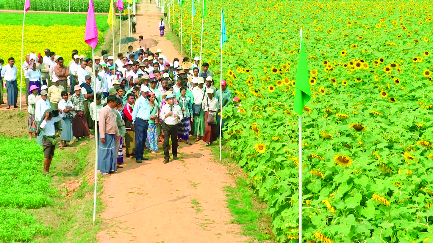 ထို့နောက် ဒုတိယဝန်ကြီးသည် ဌာနဆိုင်ရာတာဝန်ရှိသူများ၊ တောင်သူများနှင့် တွေ့ဆုံပြီး နေကြာသီးနှံကို ရာသီအလိုက် အလှည့်ကျအပွင့်အရွယ်အစားနှင့် အထွက်တိုးစေနိုင်မည့် အပင်ပုံစံတို့ကို အချင်းချင်းဝတ်မှုန်ကူးစေခြင်းနည်းဖြင့် အပင်များအား ရွေးချယ်ပြီး နောက်တစ်ရာသီတွင် ပြန်လည်စိုက်ပျိုး၍ နှစ်စဉ်မျိုးထိန်းမြှင့်တင်သွားရမည်ဖြစ်ကြောင်း၊ တောင်သူများအနေဖြင့် မိမိတို့ဒေသနှင့် ကိုက်ညီမည့် အပင်များကိုသာ ဂရုတစိုက်ရွေးချယ်ဝတ်မှုန်ကူးစေ၍ စိုက်ပျိုးထုတ်လုပ်ရမည်ဖြစ်ကြောင်း၊ စိုက်ပျိုးရေးသုတေသနဦးစီးဌာနအနေဖြင့် မျိုးမွေးမြူရေးလုပ်ငန်းများတွင် အခြေခံကြသော မျိုးကောင်းထုတ်လုပ်ရေးသည် အရေးကြီးသဖြင့် သီးသန့်အခြေခံမျိုးကွဲစုများဖန်တီး၍ ရွေးချယ်ရန်နှင့် စနစ်တကျလုပ်ဆောင်ခြင်းဖြင့် မျိုးမြှင့်တင်မှုများပြုလုပ်ရန် လိုအပ်ကြောင်း၊ နေကြာစိုက်ပျိုးရေးလုပ်ဆောင်ရာတွင် “နေကြာစိုက်ပါပျားမွေးပါ၊ ပျားရည်လည်းရ ဆီလည်းရ”၊ “နေကြာနှင့် ပျားတူယှဉ်ထားဂေဟစီးပွားအကျိုးများ” ဆိုသည့်အတိုင်း ဆောင်ရွက်ရန် လိုအပ်ကြောင်း ဆွေးနွေးမှာကြားသည်။