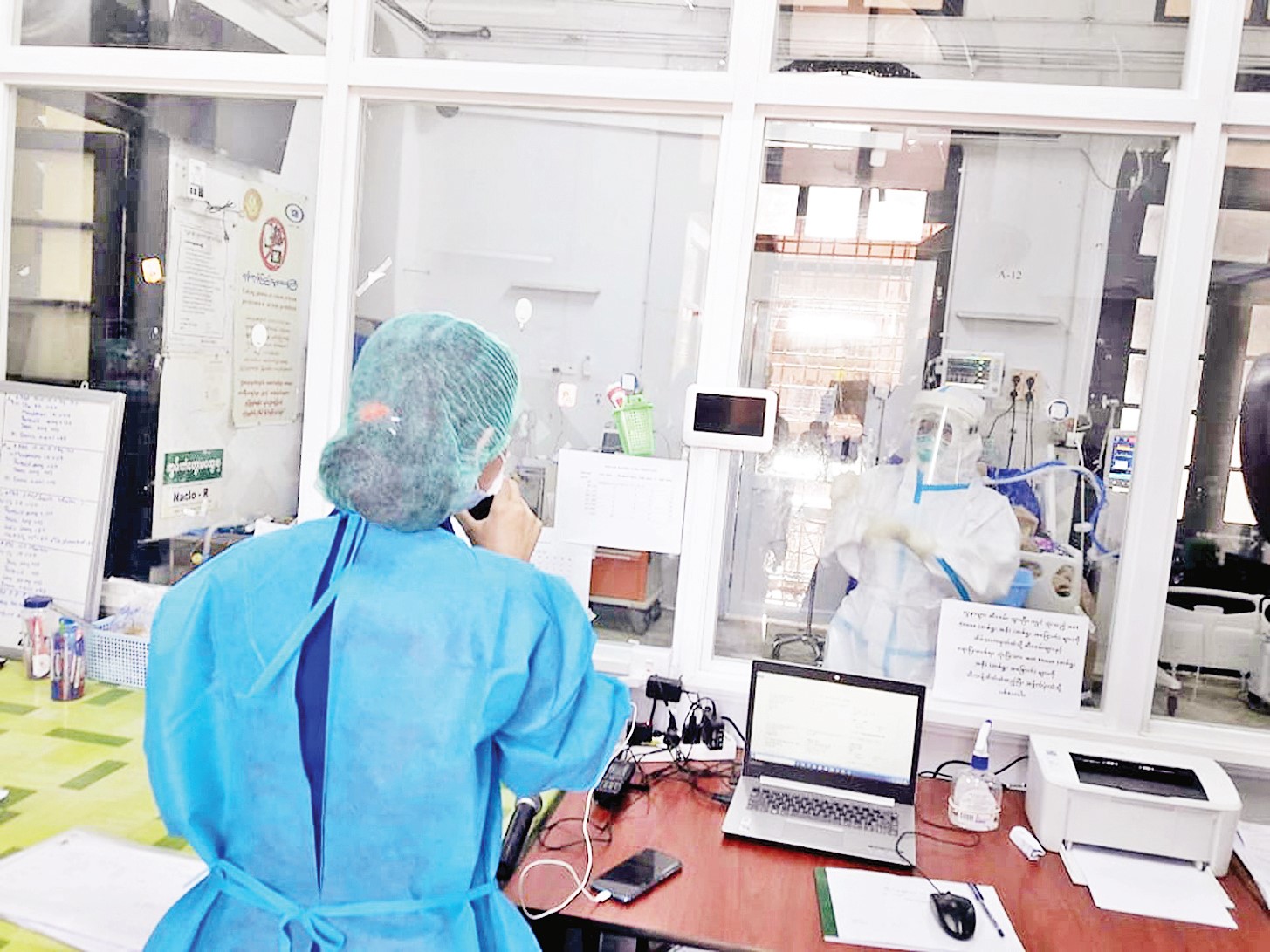 အဲဒါတွေကတော့ အစပိုင်းပြင်ဆင်ခဲ့ရတာဖြစ်ပါတယ်။ နောက်ပိုင်း တဖြည်းဖြည်း Positive လူနာတွေ ရန်ကုန်ဆေးရုံကြီးကို လာကြတယ်။ ရန်ကုန်ဆေးရုံကြီး မှာ ကုသပေးနေတဲ့အတွက် လူနာတွေက ဒီမှာပဲ ကုသချင်တယ်။ ICU လူနာတွေအတွက် အဓိကထားပြီး ကုသ ပေးနေတယ်။