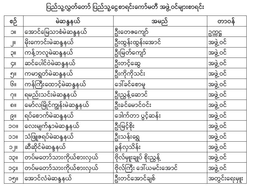 ဆက်လက်၍ ပြည်သူ့ငွေစာရင်းကော်မတီ ဖွဲ့စည်းမှုနှင့် ကော်မတီ၏ တာဝန်၊ လုပ်ပိုင်ခွင့်၊ ရပိုင်ခွင့်၊ သက်တမ်း၊ ကော်မတီအစည်းအဝေးတို့နှင့်စပ်လျဉ်းသည့် ရှင်းလင်းတင်ပြချက်များကို လွှတ်တော်၏အတည်ပြုချက်ရယူရာ လွှတ်တော်က သဘောတူသည့်အတွက် ပြည်သူ့ငွေစာရင်းကော်မတီဥက္ကဋ္ဌအဖြစ် အောင်မြေသာစံမဲဆန္ဒနယ်မှ ဦးတေဇကျော်၊ အတွင်းရေးမှူးအဖြစ် အောင်လံမဲဆန္ဒနယ်မှ ဦးတင်အောင်ချစ်အပါအဝင် အဖွဲ့ဝင် ၁၅ ဦးဖြင့် တာဝန်ပေးအပ်ဖွဲ့စည်းကြောင်းနှင့် ပြည်သူ့ငွေစာရင်းကော်မတီ၏ တာဝန်၊ လုပ်ပိုင်ခွင့်၊ ရပိုင်ခွင့်၊ သက်တမ်းနှင့် ကော်မတီအစည်းအဝေးတို့ကို လွှတ်တော်က အတည်ပြုကြောင်း ကြေညာသည်။