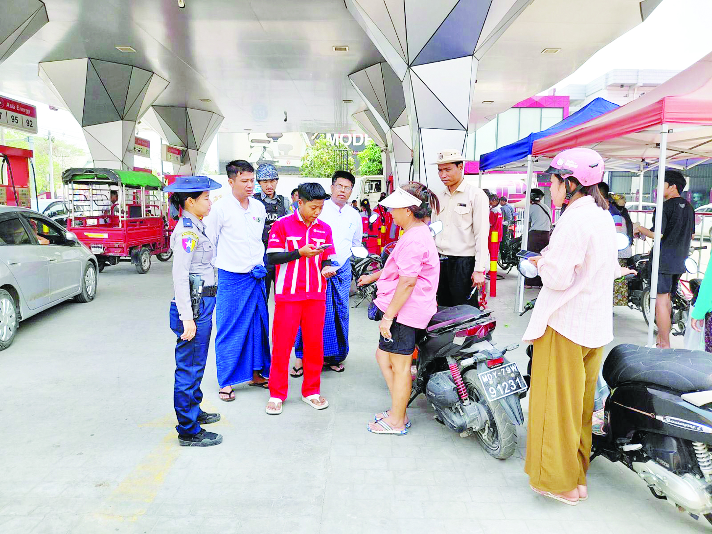Online Monitoring Center တွင် နေပြည်တော်ကောင်စီနယ်မြေ၊ ရန်ကုန်မြို့၊ မန္တလေးမြို့နှင့် တောင်ကြီးမြို့တို့ရှိ အရောင်းဆိုင်များမှ ယာဉ်၏စက်စွမ်းအားအလိုက် ဝယ်ယူခွင့်ပြုထားသည့်အတိုင်း စက်သုံးဆီများ စိစစ်ရောင်းချပေးနေမှုကို အွန်လိုင်းဖြင့် စောင့်ကြည့်ထိန်းကျောင်းကြပ်မတ်လျက်ရှိကြောင်း၊ ယခု Bar Code / QR Code စနစ်ကို ရန်ကုန် မန္တလေးလမ်းမကြီးတစ်လျှောက်ရှိ စက်သုံးဆီအရောင်းဆိုင်များ၊ အခြားတိုင်းဒေသကြီးနှင့် ပြည်နယ်များရှိ မြို့များတွင်လည်း ဆက်လက်အကောင်အထည်ဖော်နိုင်ရေး သင်တန်းပေးခြင်းများကို ဆောင်ရွက်လျက်ရှိကြောင်း၊ Bar Code / QR Code ဖြင့် Scan ဖတ်ယူရန် အခက်အခဲရှိသည့်ယာဉ်များ၊ လုပ်ငန်းသုံးမော်တော်ယာဉ်ငယ်များနှင့် အခြားလုပ်ငန်းသုံးကဏ္ဍများအတွက် လိုအပ်သည့်စက်သုံးဆီများကိုလည်း မှတ်တမ်းထားရှိ၍ ရောင်းချပေးလျက်ရှိကြောင်း၊ အရောင်းဆိုင်များအနေဖြင့် ဝယ်ယူခွင့်ရှိသည့်ပမာဏများအတိုင်း ရောင်းချပေးလျက်ရှိပြီး အရောင်းဆိုင်များတွင် ပြတ်လပ်မှုမရှိစေရေး စီစဉ်ထားရှိကြောင်း၊ သက်ဆိုင်ရာတိုင်းဒေသကြီး၊ ပြည်နယ်များရှိ တိုင်းဒေသကြီး၊ ပြည်နယ် ကြီးကြပ်စစ်ဆေးရေး အရာရှိရုံးများနှင့် ဆက်စပ်ဌာနများမှ ပူးပေါင်းအဖွဲ့များဖြင့်လည်း အရောင်းဆိုင်များသို့ မြေပြင်ကွင်းဆင်း၍ လိုအပ်သည်များ ကူညီဆောင်ရွက်ပေးခြင်းနှင့် စစ်ဆေးကြပ်မတ်ခြင်းများကို ဆောင်ရွက်ပေးလျက်ရှိကြောင်း၊ အရောင်းဆိုင်များတွင် စက်သုံးဆီအလုံအလောက်ရှိသဖြင့် ပြည်သူများအနေဖြင့် စိုးရိမ်ကြောင့်ကြမှုမရှိဘဲ လိုအပ်သလောက်သာဝယ်ယူစေလိုကြောင်း၊ စက်သုံးဆီဝယ်ယူရာတွင် အခက်အခဲများရှိပါက တိုင်ကြားနိုင်ကြောင်း၊ စွမ်းအင်ဝန်ကြီးဌာနအနေဖြင့် အချိန်နှင့်တစ်ပြေးညီ ဖြေရှင်းဆောင်ရွက်ပေးသွားနိုင်ရေး Call Center ဖွင့်လှစ်ထားရှိကြောင်းနှင့် နည်းပညာဆိုင်ရာအခက်အခဲများနှင့် အခြားတင်ပြတိုင်ကြားလိုပါက ဆက်သွယ်ရန် Call Center ဖုန်းနံပါတ်များဖြစ်သည့် ဖုန်း - ၀၉ ၄၄၀၄၃၃၃၂၄ ၊ ၀၉ ၈၉၉၁၂၉၂၉၆ ၊ Viber - ၀၉ ၄၀၁၇၄၈၅၉၈ တို့ကို တိုင်းကြားနိုင်ကြောင်း သိရသည်။