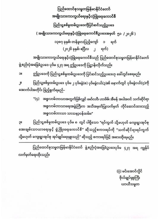 ပြဌာန်းပြီးဥပဒေများ