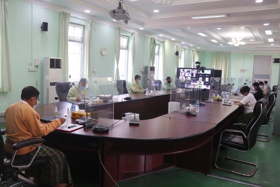 ပဲခူးတိုင်းဒေသကြီးအစိုးရအဖွဲ့ရုံး၊ တော်ဝင်ဟံသာခန်းမ၌ ဒီဇင်ဘာ ၃ ရက်နေ့ မွန်းလွဲ ၂ နာရီက တင်ဒါလုပ်ငန်းဆိုင်ရာ ညှိနှိုင်းအစည်းအဝေးအား Online Meeting စနစ်ဖြင့် ကျင်းပခဲ့သည်။
