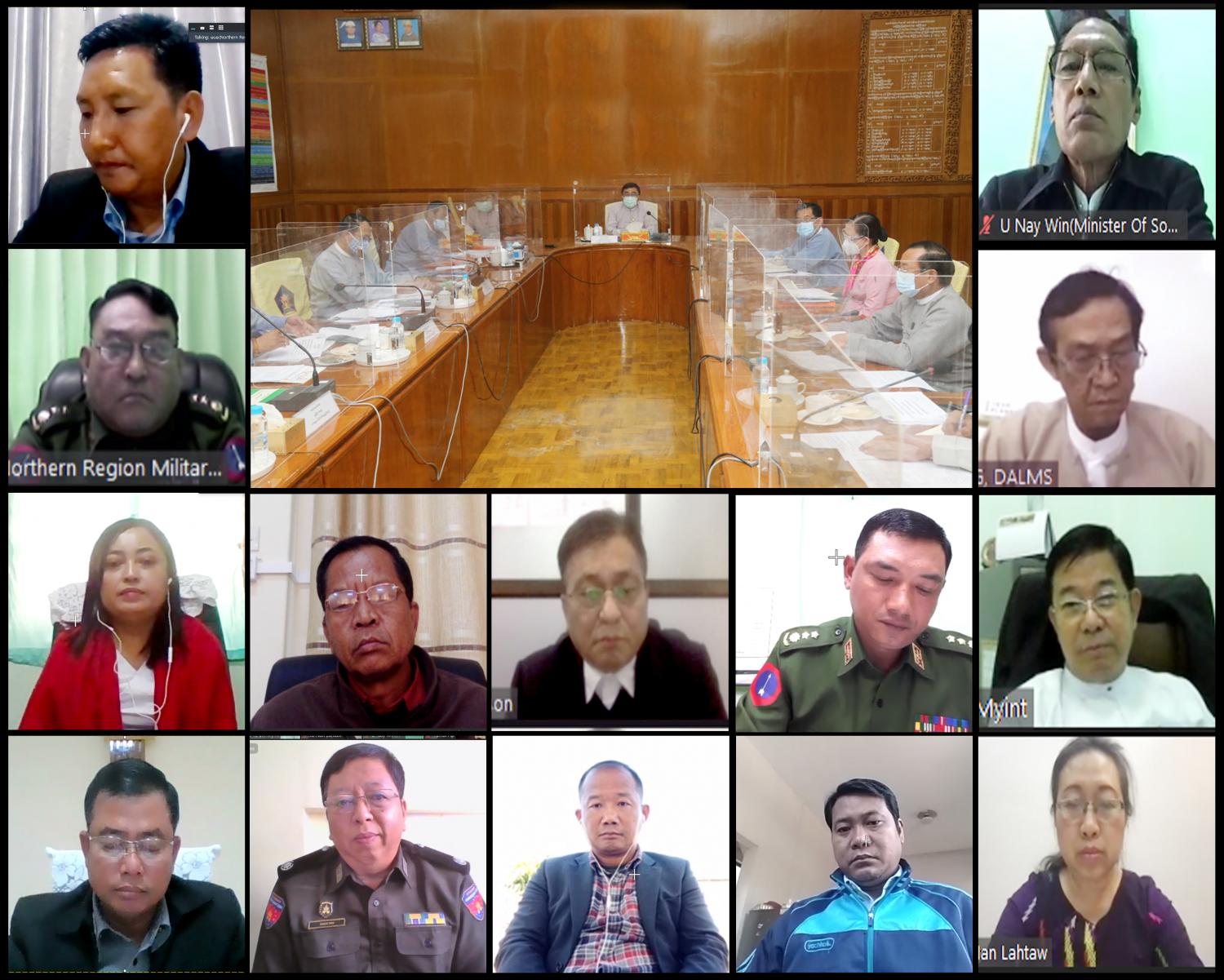 ကချင်ပြည်နယ်အတွင်းရှိ နေရပ်စွန့်ခွာရသူများ ပြန်လည်နေရာချထားမှု အကောင် အထည် ဖော်ရေးဆိုင်ရာ လုပ်ငန်းအဖွဲ့နှင့် ကချင်ဒေသ စစ်ဘေးရှောင်ပြည်သူများအား ကူညီ စောင့်ရှောက် ရေးကော်မတီ (KHCC)တို့၏ စတုတ္ထအကြိမ်အစည်းအဝေးကို ယနေ့မွန်းလွဲပိုင်း တွင် လူမှုဝန် ထမ်း၊ ကယ်ဆယ်ရေးနှင့် ပြန်လည်နေရာချ ထားရေးဝန်ကြီးဌာန၌ Video Conferencing စနစ်ဖြင့် ကျင်းပသည်။